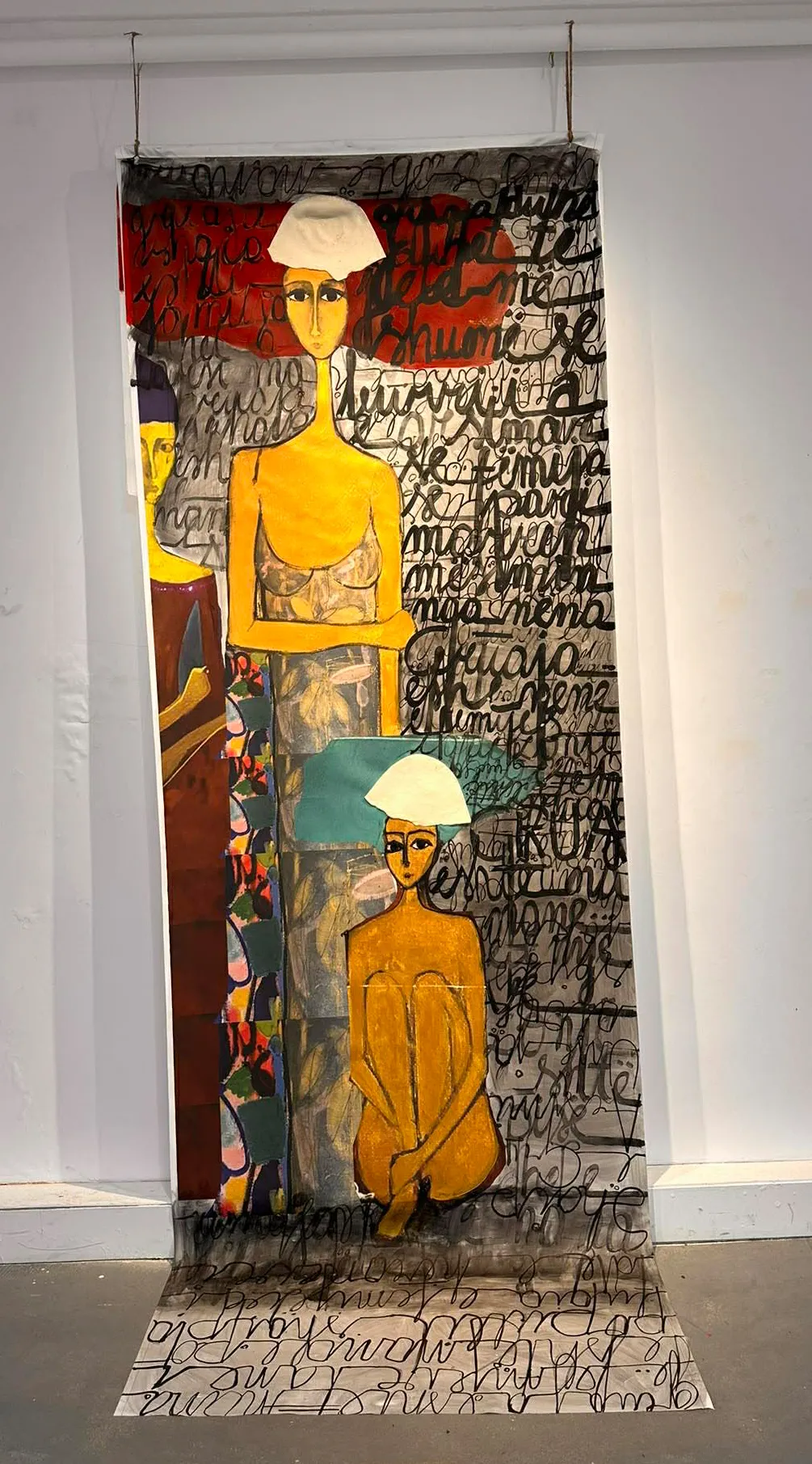 Në planin kromatik, ekspozita lë përshtypjen e një skeme të qëllimshme simbolike dhe atmosferike. Paletat dialogojnë midis ngjyrave të ngrohta nuancave të kuqes të shtypura në fusha të mëdha si shenja identitare dhe pasioni kolektiv dhe gamës neutrale të grisë, zezës dhe të bardhës, që funksionojnë si hapësirë reflektimi dhe reminishence. Një përdorim i shpeshtë i toneve tokësore (okër, kafe të errëta) rringjallin subjektet në një kontekst material, duke i lidhur figurat me tokën dhe historinë. Në shumë vepra ngjyrat nuk janë thjesht simbol estetik, ato sillen si dokument si gërmim memorieje dhe hapin hapësira emotive ku nostalgjitë përzihen me kritikën. Formatet dhe raportet e përmasave flasin me gjuhën e monumentalitetit dhe të artistikës në të njëjtën kohë. Kompozicionet e mëdha, horizontalisht të orientuara, kërkojnë shikim të përbashkët dhe vendosen si tabele kolektive, ato riprodhojnë skena ose kompozime ku figura dhe peizazhi bashkohen në një plan. Kundrejt tyre, punimet me dimensione më të vogla dhe grafikat preferojnë format vertikale ose katrore të punuara në nivel të lartë artistik, simbolik, përmbajtësor, drejt imazhit realist. Në disa instalacione, artistët shfrytëzojnë hapësirën arkitektonike të galerisë, elementët vihen në dialog me muret, dritën natyrore dhe rrugëtimin e vizitorit, duke krijuar një skenografi që kërkon lëvizje dhe pjesëmarrje.