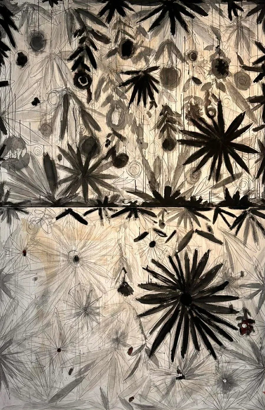 Kompozicioni i përgjithshëm i ekspozitës tregon një sens pedagogjik, profesorët, si krijues dhe mësimdhënës, nuk i lenë publikut vetëm estetikën e bukurisë, por e ushtrojnë atë në formë reflektimi kolektiv. Veprat shpesh përdorin kontrastin midis ngjyrave, masave, teksturave për të krijuar tension interpretativ. Në një nivel filozofik, punimet kapin marrëdhënien e individit, midis kohës së shkuar dhe horizonteve të së ardhmes. Simbolika kombëtare shërben si pikënisje, jo si mbyllje, ajo shndërrohet në material për shqyrtim si një testament që duhet lexuar jo vetëm me emocione, por edhe me racion dhe kritikë estetike. Kjo dinamike shënohet qartë tek pjesa më e madhe e veprave, elementët figurativë nuk i imponohen shikuesit, ata e sfidojnë atë të reflektojë mbi marrëdhënien e vet me figurat kombëtare historike , me hapësirën përkujtimore dhe me historinë.