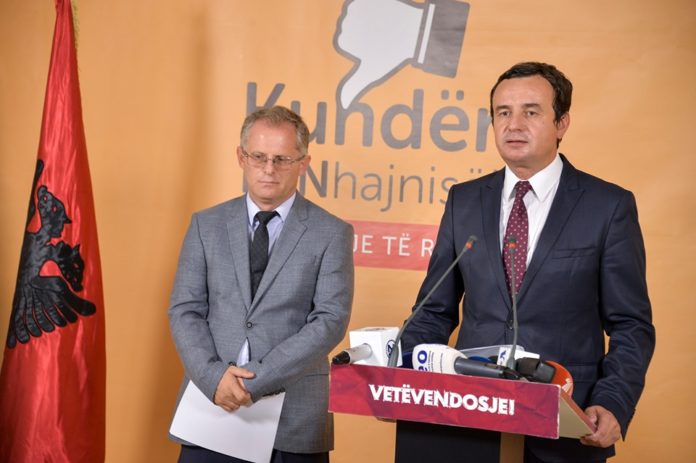 Në selinë e Lëvizjes Vetëvendosje! të shtunen është mbajtur konferencë për media, lidhur me zhvillimet e fundit politike në vendin tonë. Në konferencë kanë foluar kryetari Albin Kurti, i cili ka thënë se që nga dhjetori i vitit të kaluar kanë nisur të vvijnë ftesat për komandantët dhe luftëtarët e UÇK-së nga Gjykata Speciale. Me 3 gusht bëhen 4 vjet prej kur u ndryshua Kushtetuta e Kosovës me amandamentin nr.24 për t’i hapur rrugë Speciales e cila hyn brenda trupit të Republikës sonë dhe me kusht që të mbetet sipër saj. Me 82 vota PËR e patën pranuar atë që është e paimagjinueshmja. UÇK-në të cilën e lanë jashtë Deklaratës së Pavarësisë dhe jashtë Kushtetutës së Republikës, e futën brenda Gjykatës Speciale! Është mirë që televizioni publik të ritransmetojë seancat plenare të Kuvendit të Republikës të 26 qershorit dhe 3 gushtit 2015.
