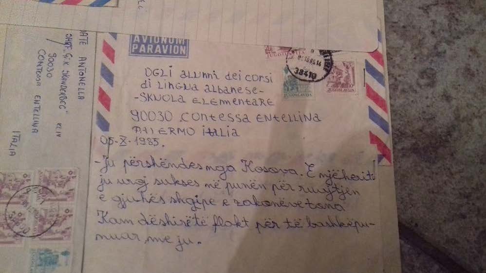 Kur punohet, rezulatet duken. Ndërsa po sistemoja bibliotekën më doli rastësisht një material, ku gjendej fotografia e mësuese Tommasina dhe ky zarf i vitit 1985 kur demostronte që Mësuesja Tommasina Guarino së bashku me nxënësit e saj në Contessa Entellina\ Kundisa mbanin korrespondencë më nxënsit e Kosovës.