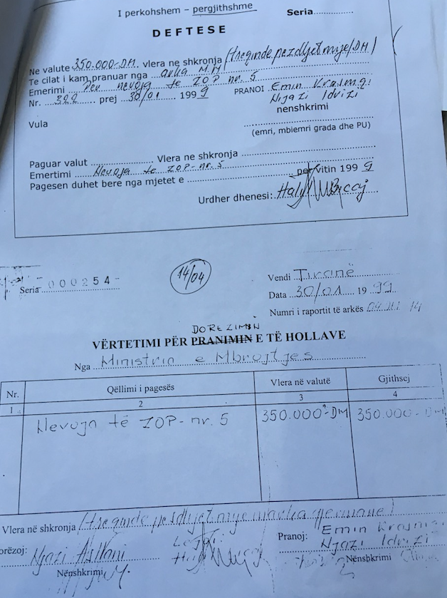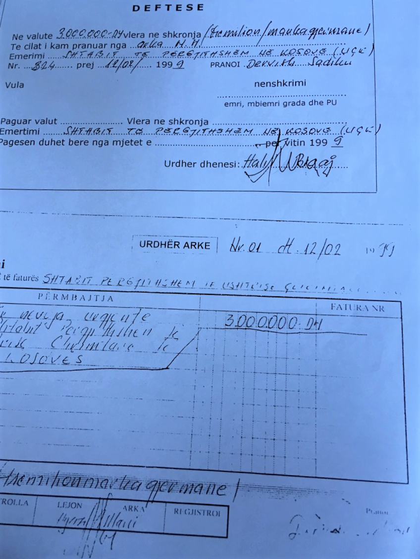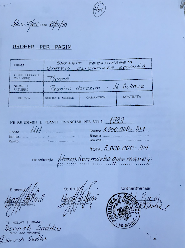 (Shihni në vijim faksimilin e pagesave që i janë bërë UÇK-së me të hollat e Fondit të Republikës së Kosovës)