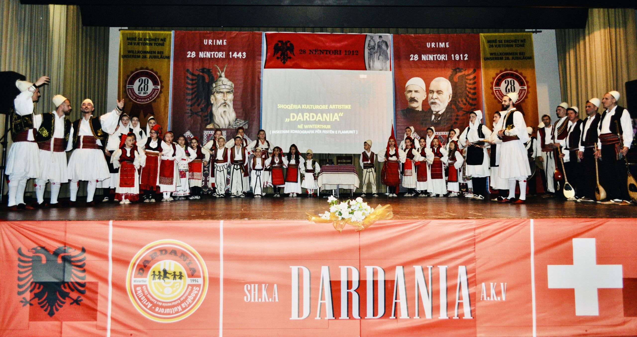 Kjo shoqëri kulturo-artistike në kuadër të 28 vjetorit të themelimit dhe Ditës së Flamurit organizoi një manifestim tejet masiv përmes një programi të përzgjedhur festiv, tejet mbesëlënës. « Dardania », që hynë në radhët e shoqërive elitare shqiptare në Zvicër, për afro tri dekada është kthyer në një vatër që kultivon një art të mirëfilltë popullor, shoqëruar me instrumente karakteristike folklorike