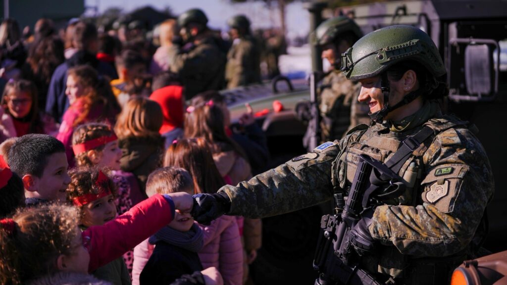 10. Një ushtare e buzëqeshur e FSK-së derisa përshëndeste fëmijët një nga një.