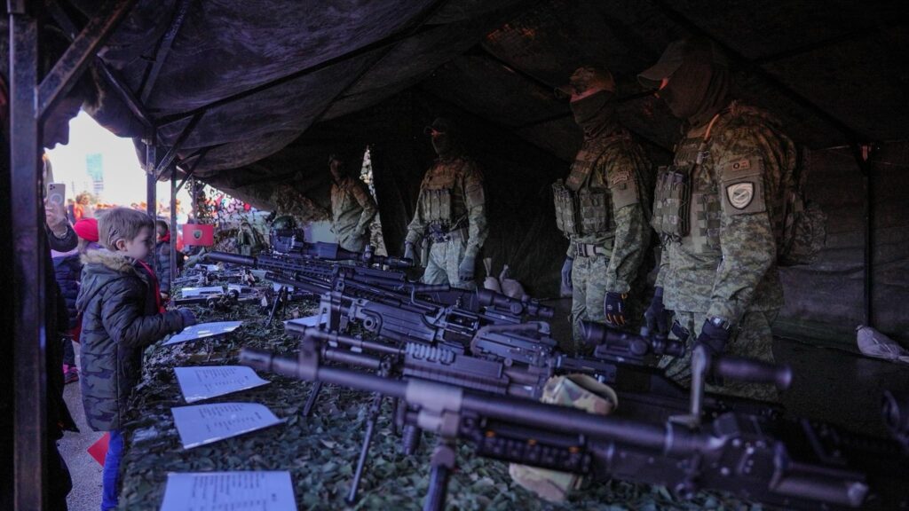 8. Snajperë dhe mitrolozë të ushtarëve të FSK-së ishin të ekspozuara në këtë tavolinë. Ky fëmijë i shikonte me shumë kujdes.