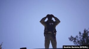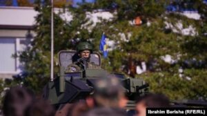 11. Nën flamurin e Kosovës, të vendosur mbi automjetin ushtarak ,qëndronte ky ushtar i Forcës së Sigurisë së Kosovës.