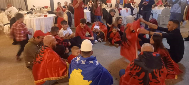 Familjet e tyre veshur me kostumet kombëtare me flamuj në duar, nën tingujt e muzikës i dhanë jetë, shpirt e dinjitet kësaj feste edhe pse në dhe të huaj