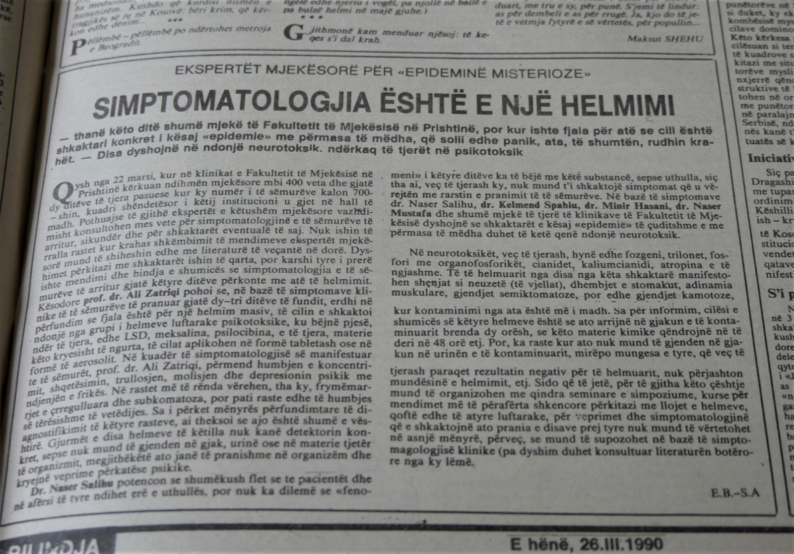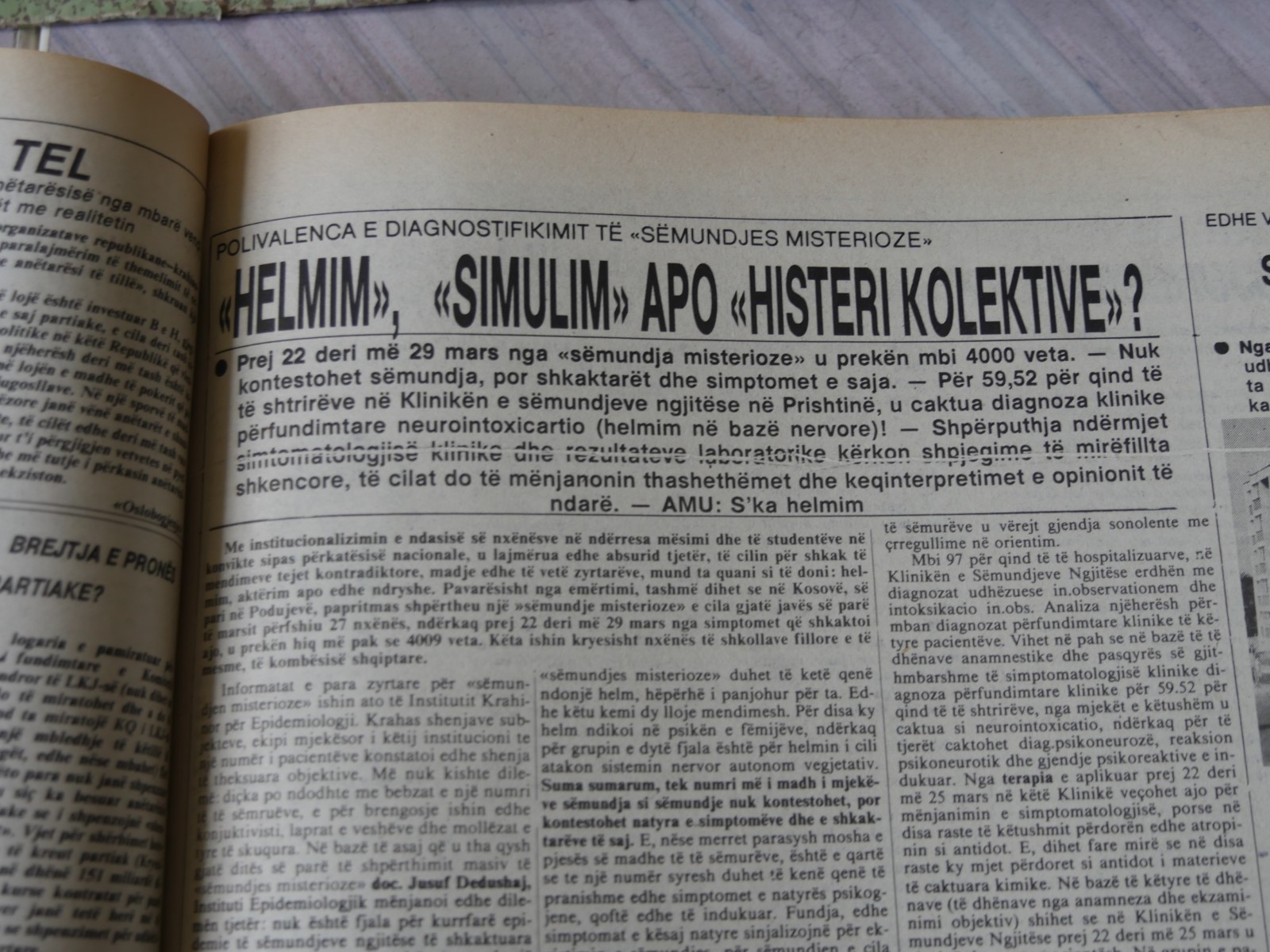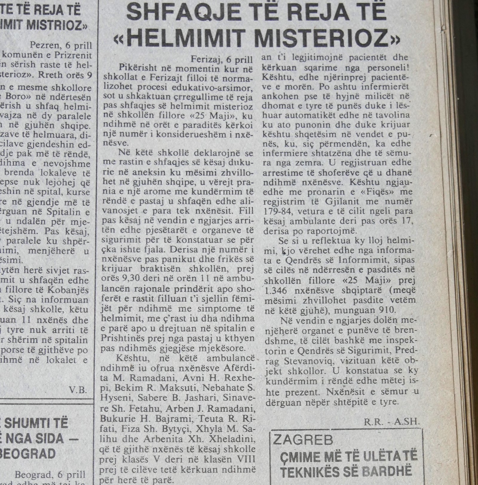 Dhe, helmimi vazhdonte sipas skenarit të sofistikuar e të përgatitur mirë e mirë në kuzhinat beogradase. Sakaq, ai përfshiu gjithë Kosovën. Numri i të sëmurëve arriti shifra alarmuese. Një dukuri e rrallë që mahniti botën e civilizuar. Diçka e paparë dhe e padëgjuar në historinë e re të njerëzimit. Ishte kjo një nga format e gjenocidit serb ndaj shkollës shqipe.