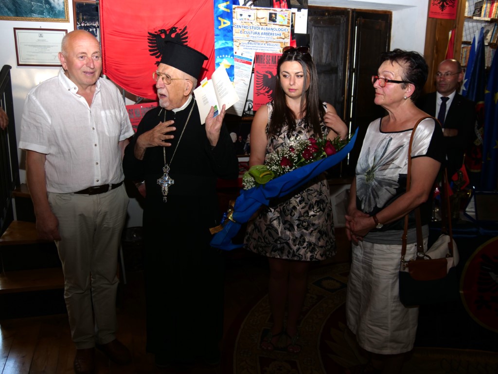 - Në ballkonin tim- rrëfen At Bellusci- vazhdojnë të valvitet tre flamujt, shqiptar, kosovar, dhe ai Italian. Ndërsa në bibliotekën time, portretet si ajo e Skënderbeut, Alesandrit, Pirros, Adem Jasharit,për mua janë ndihmë (suport) burim force, e sensibilizimi që kjo Arbëri e arbëreshëve të jetë e përjetshëme e mos të vdes kurrë!