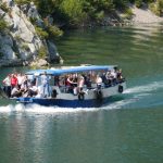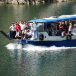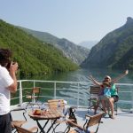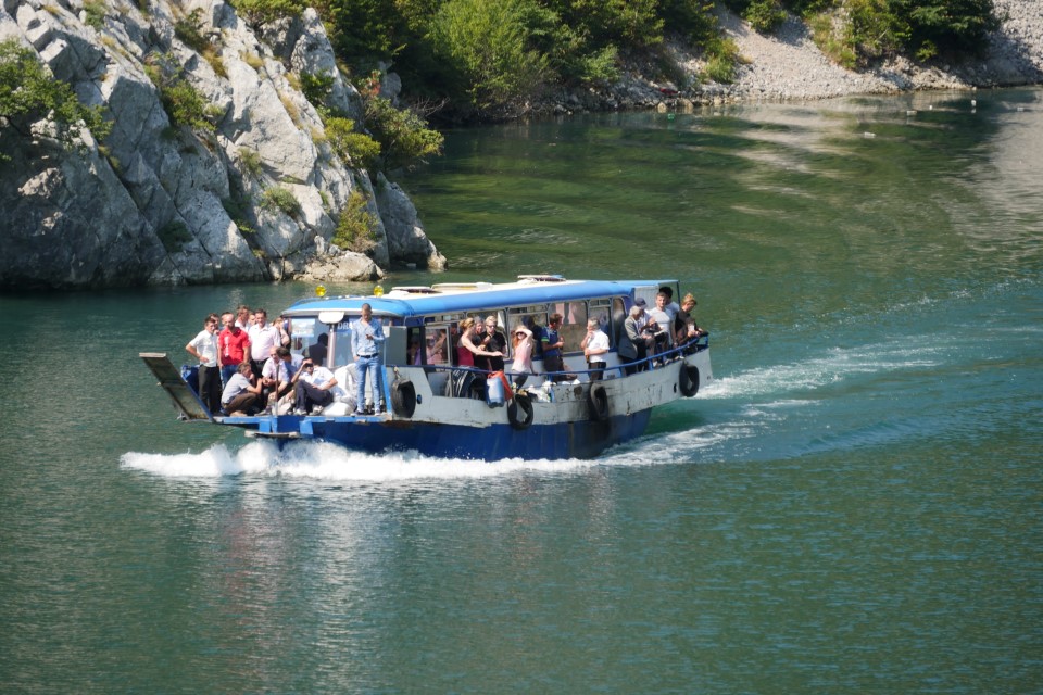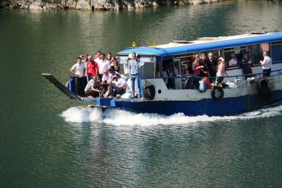 Hyrjen në Shqipëri e filluam përmes pikës kufitare Qafë Prush, për të vazhduar me traget përmes liqenit të Fierzës deri tek hidrocentrali i Komanit. Të udhëtosh me traget dhe të shikosh e shijosh bukurit e rralla është më se mahnitës, veçmas kur syri të kap ato pamje përrallore që ofron liqeni i rrethuar me shkëmbinj e thepa të lartë. Ndërsa barka dhe anijet e vogla sikur të çojnë në një botë tjetër. Karakteristike ishte se thuaja më tepër se gjysma e udhëtarëve në traget ishin turist të huaj, kryesisht austriak, gjerman e italian por edhe nga shtetet skandinave. Ata përmes aparateve dhe kamerave gjironin pamjet fantastike që ofronte liqeni i pastër si loti dhe që mirëmbahej edhe nga ekipe për pastrimin e tij.