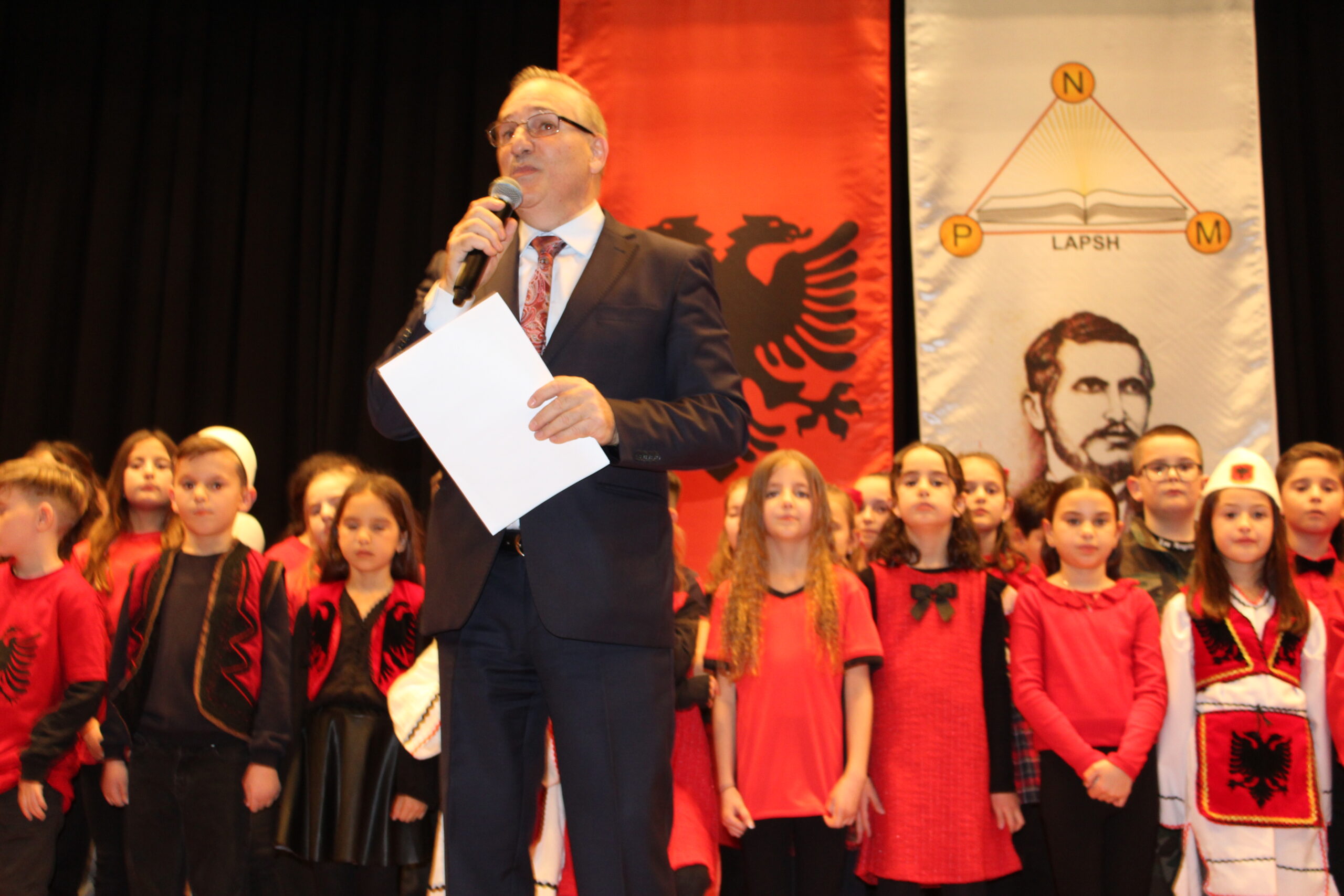 Në një atmosferë festive dhe të mbushur me emocione atdhetare, “Shkolla Shqipe” organizoi manifestimin tradicional kushtuar 28 Nëntorit – Ditës së Flamurit dhe Pavarësisë së Shqipërisë. Nën udhëheqjen e moderatores Lina Limoni, ish-nxënëse e shkollës, programi u hap me intonimin solemn të Himnit të Flamurit nga kori i shkollës, duke shënuar fillimin e një mbrëmjeje të veçantë kushtuar historisë dhe identitetit kombëtar.
