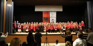 Kënga e fundit u këndua me të gjithë nxënësit në skenë, duke sjellë një atmosferë të ngrohtë dhe të mbushur me krenari shqiptare.