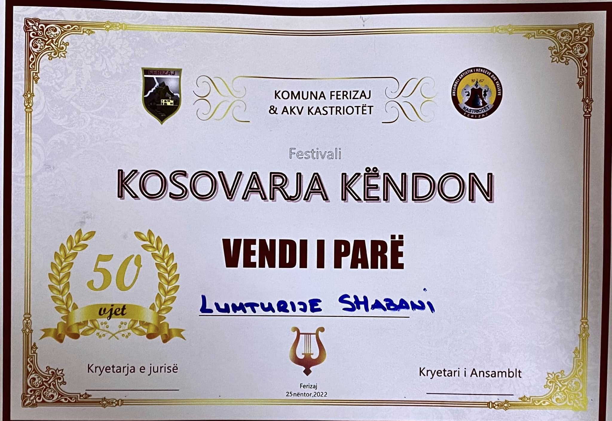 Tashmë edhe qyteti i Ferizajt njëri pas tjetrit po i shënon jubiletë e një renesance 50- vjeçare kulturore, derisa AKV “Kastrotët” shënoi 55 vjetorin e rritës, një manifestin tjetë unik i lindur po në këtë qytet 50 vjet më parë: Festivali “Kosovarja këndon”, e ku krahas fitueses së parë Sadije Çarkaxhiu, ishte edhe fituesja e 50-të me radhë, Lumturie Shabani, një super ylli për moshën e saj, çmim këtë të cilin ia dorëzoi kryetari i Komunës së Ferizajt, Agim Aliu, nën patronatin e të cilit edhe u mbajt ky përvjetor jubilar