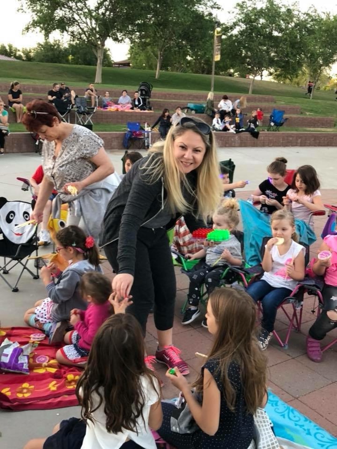 Në parkun e bukur dhe me mundësi të shumta për të bërë gjëra të ndryshme, nën udhëheqjen e Bletës dhe me ndihmën e bashkëpunëtoreve tjera, si Diellza Shkodra, Drita Kodra, Mimoza Misini, fëmijët bënë gara të ndryshme duke vrapuar me thasë nëpër këmbë, duke tërhequr litarin, duke luajtur llotari dhe në fund duke shikuar filmin për femijë ”Toy Story” në qiellin e hapur. Studentja e re Bleta, e cila ndjek studimet në Universitetin Shtetëror të Arizonës për mësuese ka pasion të madh të merret me fëmijë dhe t’i kënaqë ata me lojëra e aktivitete të ndryshme, prandaj krahas studimeve ajo vazhdon të jetë shumë aktive edhe në shoqatën e grave për të bërë gjëra të bukura për fëmijët. Mbas aktiviteteve të ndryshme fëmijët u shërbyen me pije dhe pica, të cilat i dhuroi falas piceria “#1 Brothers Pizza” nga Mira e Gerti Qalliaj.