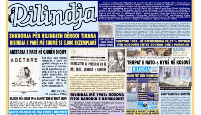 -Gazeta tradicionale Rilindja, histori Kosove që nga koha e Konferencës së Bujanit të Rezolutës për vetëvendosje e të drejtë bashkimi me Shqipërinë e deri në shpalljen e pavarësisë e njohjet ndërkombëtare, nisi të dalë para 77 viteve në 12 Shkurt 1945 në Prizren, me angazhimin e intelektualëve më të shquar të asaj kohe, me shkronja plumbi që u sollën me arka nga Tirana.