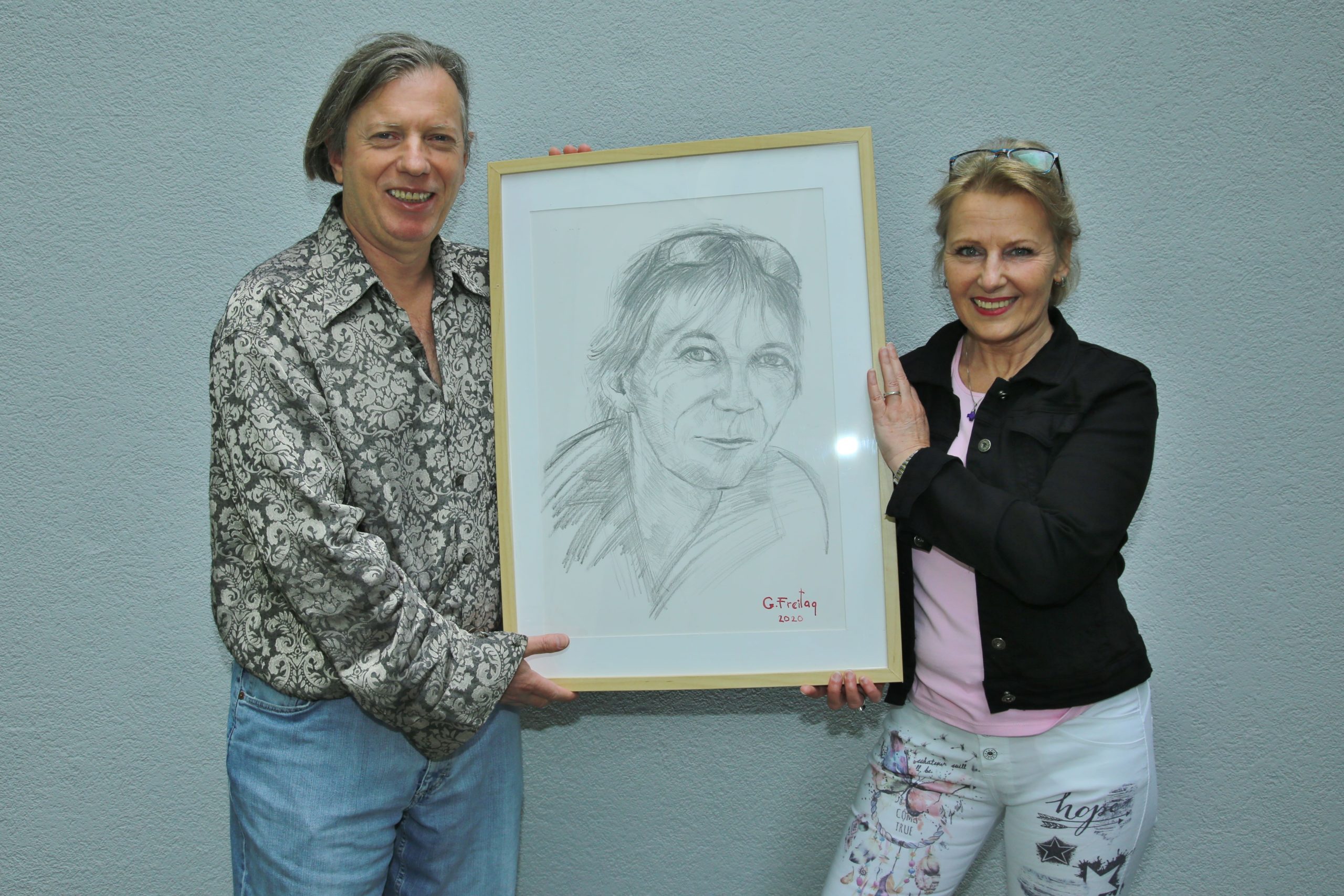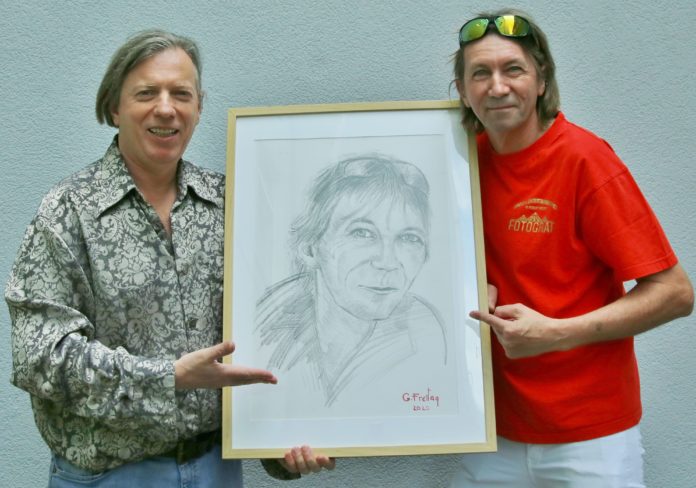 Të enjten, 21 maj 2020, në Linz, artisti Freitag ia dorëzon yllit të fotografisë Robert Rieger portretin e tij.