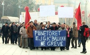 Der Kampf der Arbeiter und Arbeiterinnen in Kosova. Kosova gilt als das ärmste Land in Europa. Offiziell liegt die Arbeitslosigkeit bei 45%. Der neoliberale Privatisierungsprozess kostete bis jetzt 76.000 Arbeitsplätze. Auf der anderen Seite gibt es einen Reaktivierungsprozess- der Arbeiterbewegung. Die Gewerkschaft bei der PTK (Post und Telekommunikation) trug durch ihre Streikandrohung maßgeblich zum Scheitern der Privatisierung dieses Unternehmens bei. Immer mehr Gewerkschafter fordern eine aktivere Gewerkschaftspolitik in Kosova. Kosova kennt keine Krankenversicherung und keinerlei Arbeitslosengeld. Auch die Arbeiter bei der KEK (Stromversorger) engagieren sich mehrheitlich gegen die Privatisierung des Unternehmens. In Kosova ist es üblich renitente Gewerkschafter zu entlassen, oder gar zu verhaften. Letzteres geschah bei Ferronikel in Drenas und am privatisierten Flughafen in Prishtina. Die gewerkschaftlichen Aktivisten in Kosova benötigen internationale Solidarität und Hilfe.