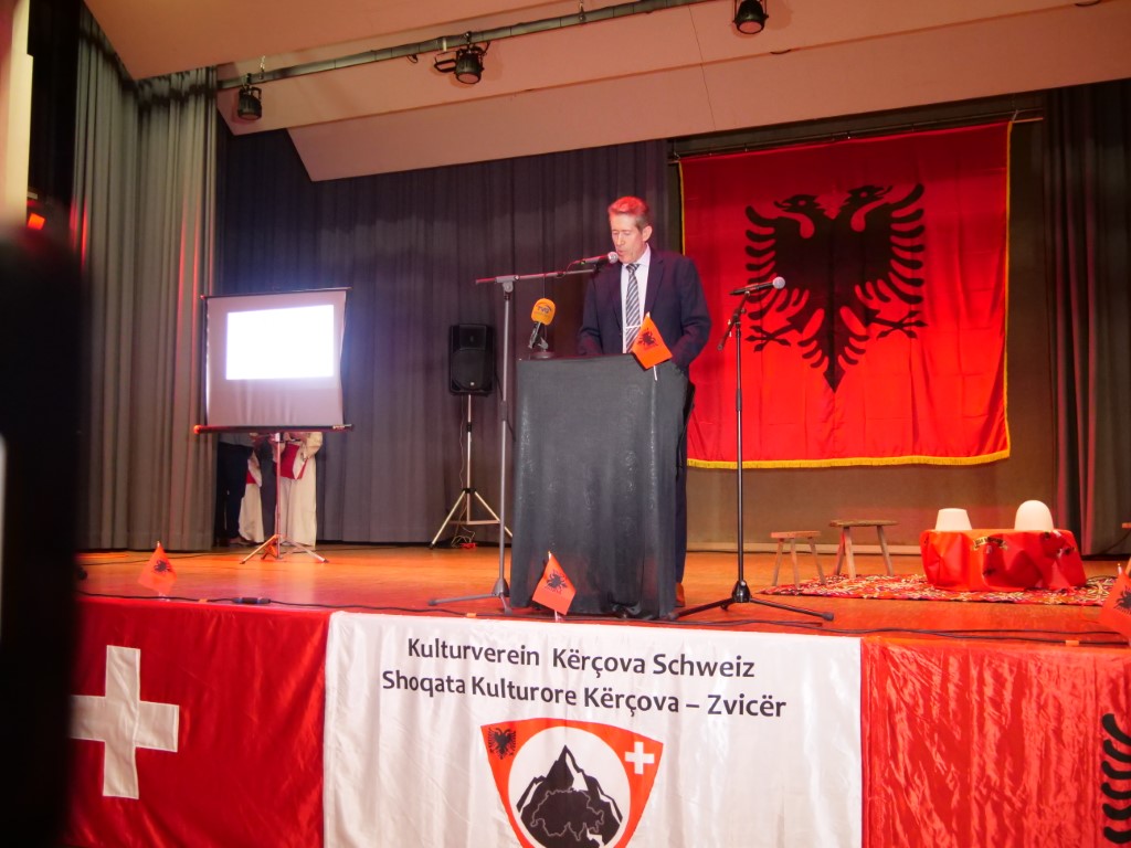 Me këtë rast Resul Mehmedi vuri në pah dy datat historike që kremtohen me krenari gjatë këtij nëntori: Kongresin e Manastrit 1908 dhe ngritja e flamurit më 28 Nëntor në Vlorë 1912, duke kujtuar sakrificën e kombit tonë përgjatë shekujve që nga periudha jonë më e lavdishme historike, atë të Heroit tonë, Gjergj Kastriotit Skënderbeut, etapë kjo që shënon lavdinë dhe krenarinë shqiptare. Kryetari i shoqatës krahas falënderimit që i bëri anëtarëve të kryesisë familjeve, shoqatave simotra e sponsorëve, përfundoi me një falënderim të madh për grupin artistik “Kërçova” në Zvicër që është krenaria e kësaj shoqate.