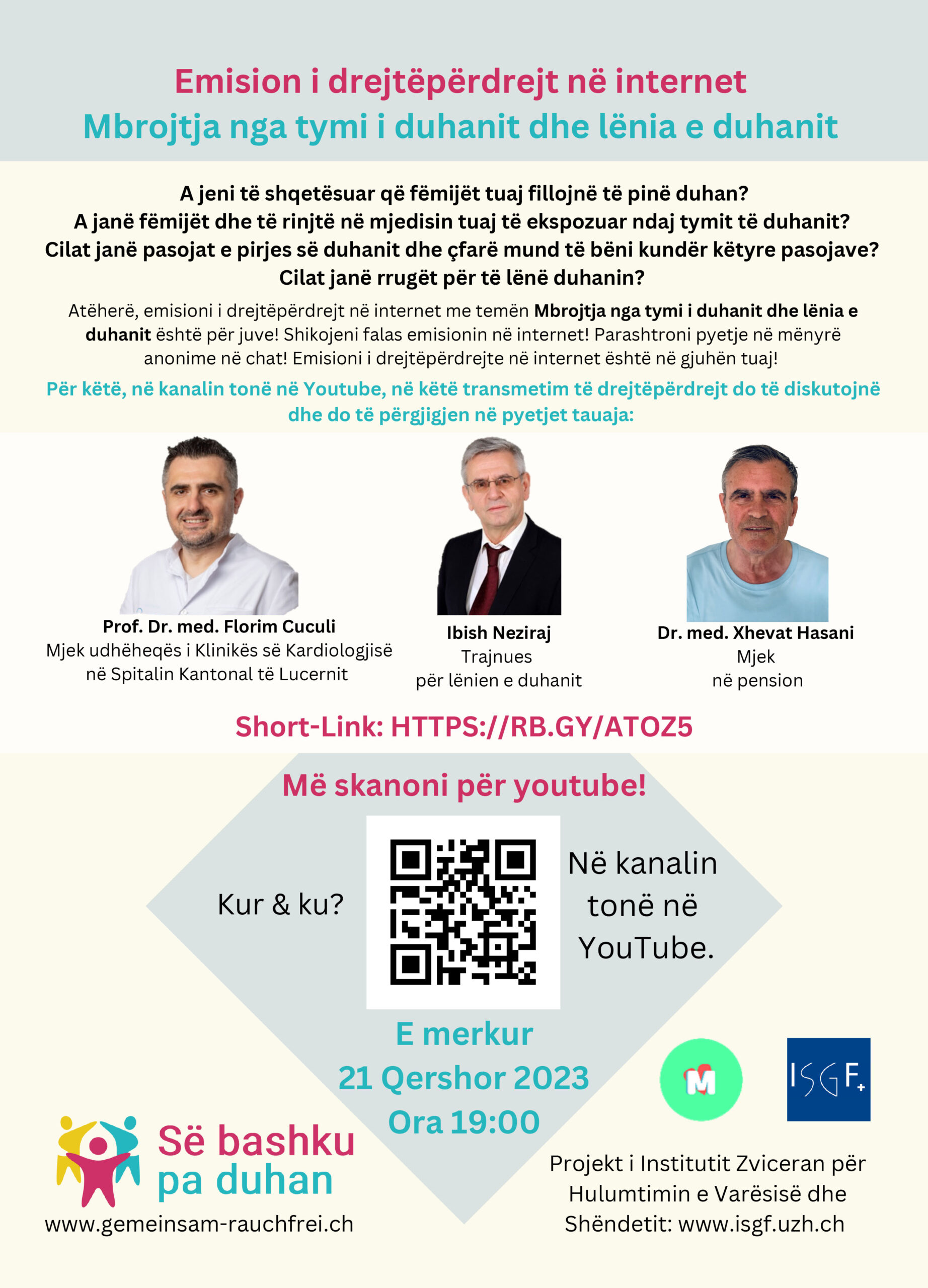 Për këtë dhe të tjera më 21 qershor nga ora 19.00 në një transmetim të drejtëpërdrejt në Youtube, pa pagesë. Parashtroni pyetje në mënyrë anonime në chat! Emisioni i drejtëpërdrejte në internet është në gjuhën tuaj!