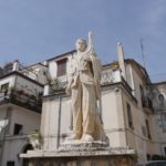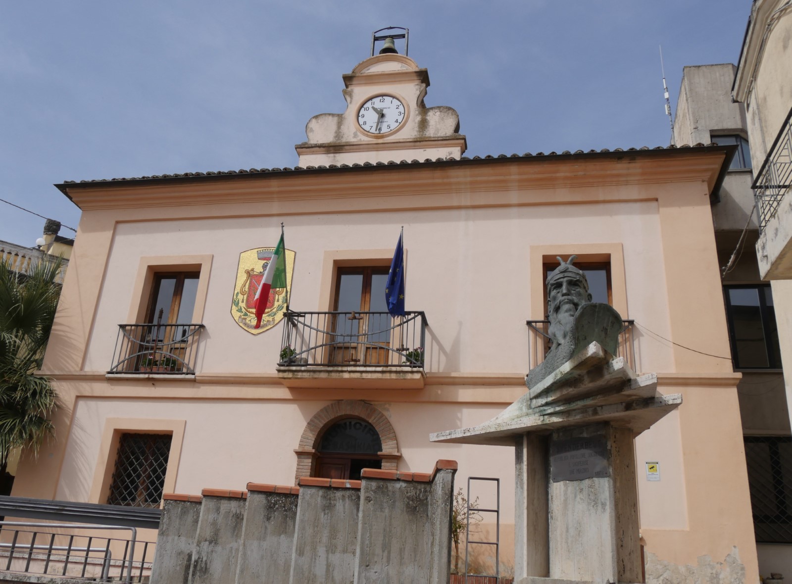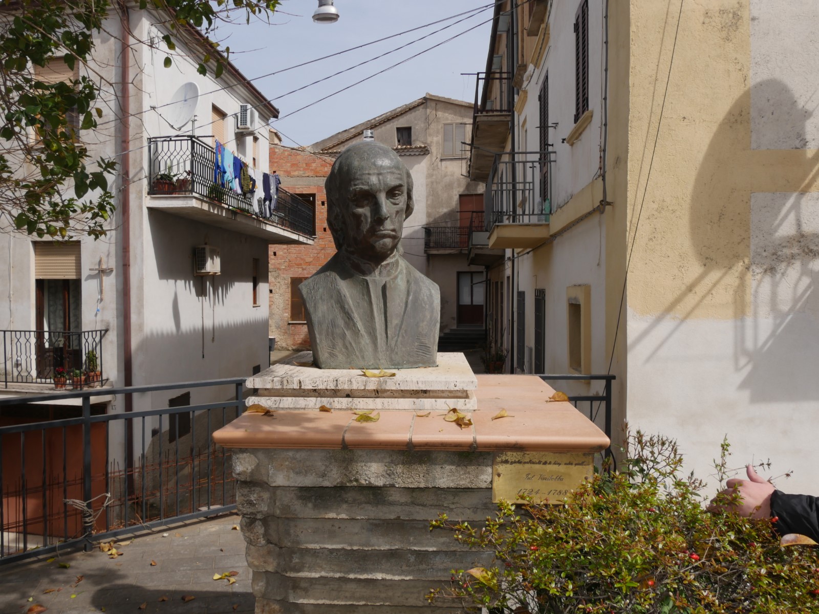 Dhe gjatë ecjes me plot kureshtje nëpër këtë qytezë i shoqëruar nga Sherif Dakaj, kryetari i ansamblit “Rinia” në Zvicër, me të arritur në shesh, para bashkisë së qytetit si edhe në shumicën e fshatrave arbëreshe, edhe këtu hasëm në bustin e kryetrimit tonë, Gjergj Kastrioti Skënderbeu. Diku rreth 200 metra më tej në një shesh tjetër ndodhej busti i Jul Variboba (1724-1788), prift dhe shkrimtar i njohur arbëresh dhe ish rektor i Seminarit arbëresh të Shën-Benedikt në Ullano, ku edhe në vitin 1762 botoi veprën “Gjella e Shën-Mërisë Virgjër”- një vepër e hartuar me synim artistik që nga studiuesit llogaritet si kalimi nga poezia e llojeve të shkurta në poemën e gjatë.