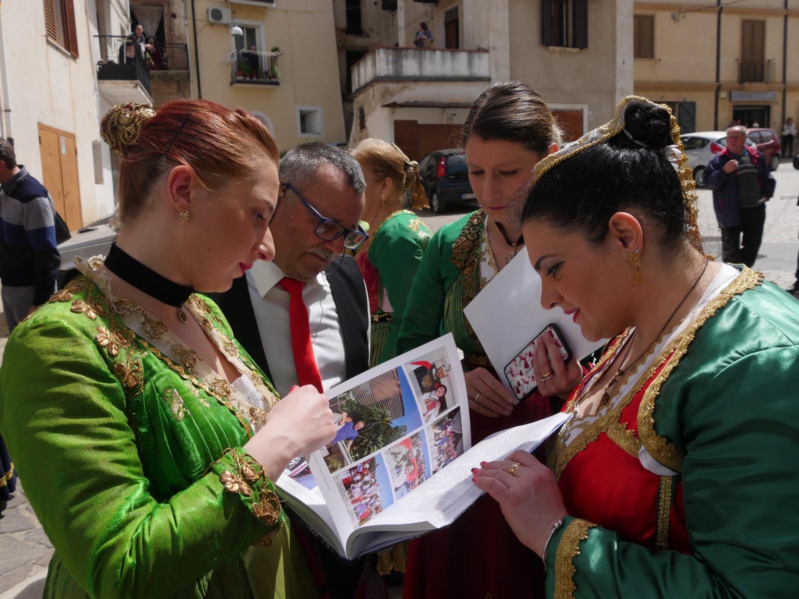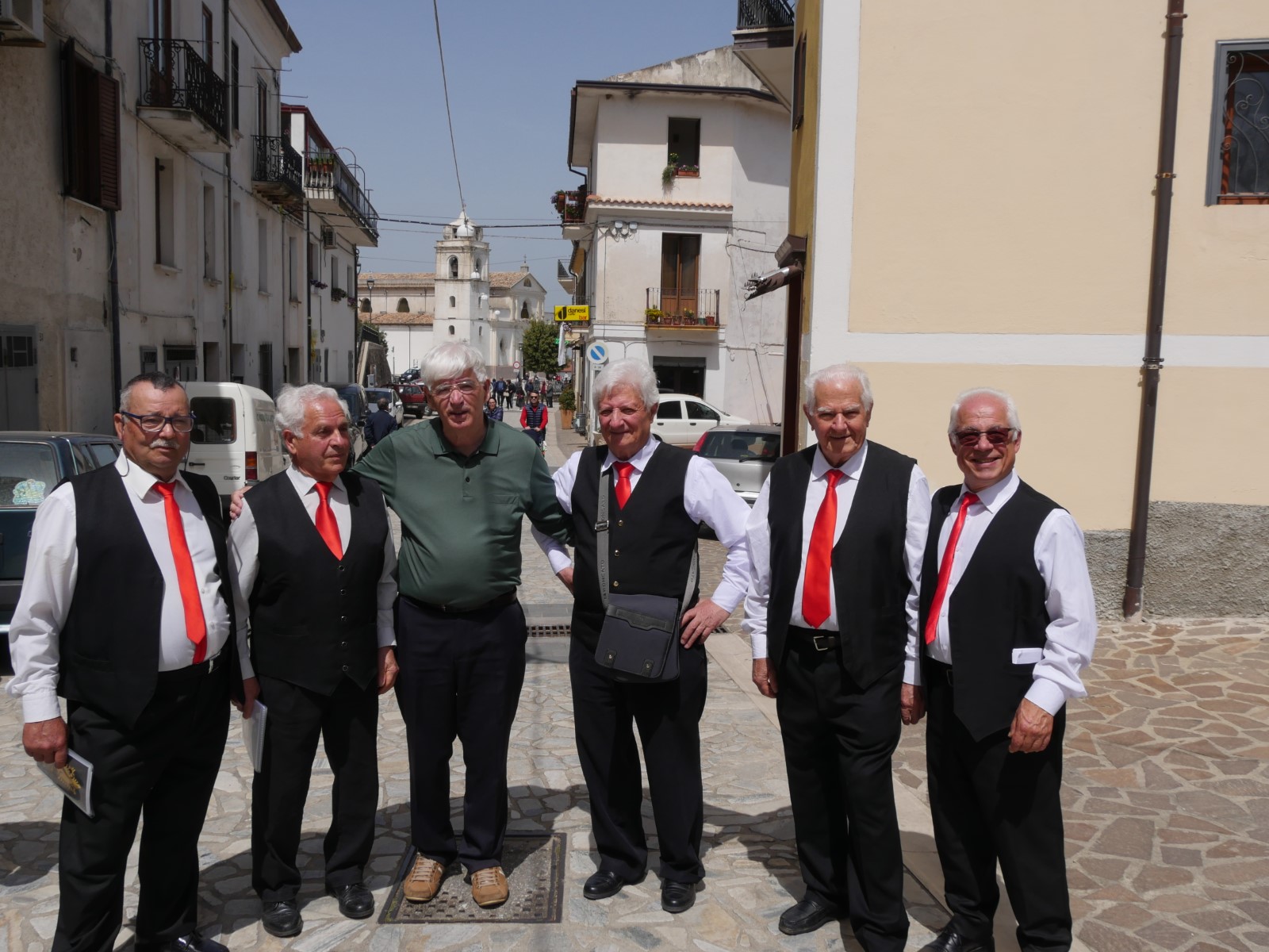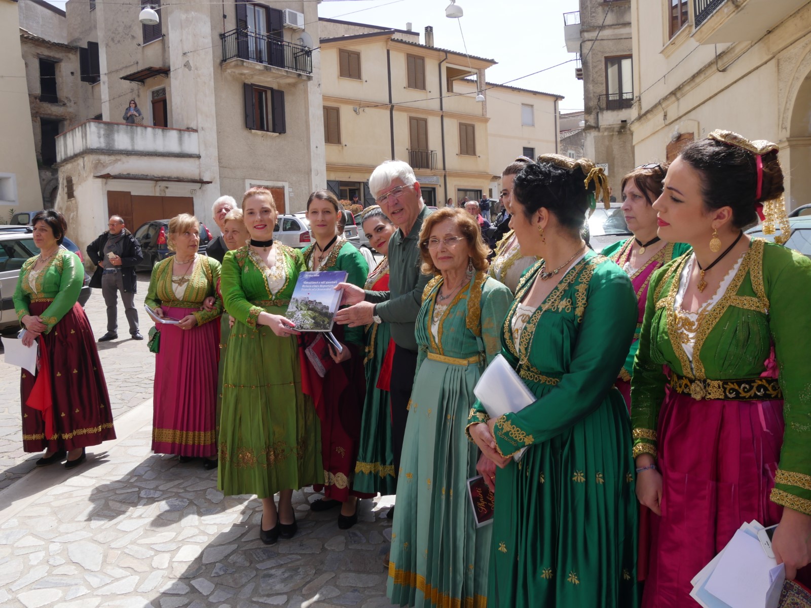 Hasëm gjithashtu edhe në njerëz të moshuar që të ulur në shkallë apo ulëse të gjata që bisedonin ngrohtësisht mes veti. Zakonisht vendasit kanë interesim për qeleshet shqiptare që barten në trojet etnike, të cilat gjithnjë e më shpesh po barten edhe nga anëtarët e grupeve të këtushme artistike, ndaj edhe na pyesin se a u kemi sjell ndonjë?!. Por në vend të qelesheve, kryetares së grupit të këtushëm artistik i dhurova librin tim: “Shtegtimet e një gazetari”, në shenjë mirënjohje që ajo vjet gjatë një organizimi të një vizite të arbëreshëve në Kosovë ishte në mesin e tyre. Madje unë e kisha pas harruar po të mos më përshëndeste ajo aq përzemërsisht!