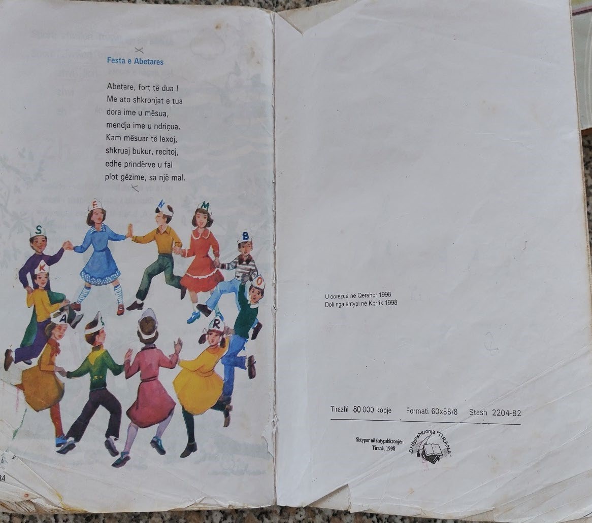 Ju lutem mos gjykoni mirëmbajtjen e këtyre abetareve të cilat vinin nga Shqipëria dhe që me shumë siklet i gjenim në ato vite. Ishin kohë revolta dhe mezi lëvizje nëpër Shqipëri, ku edhe vet shqiptarët kishin mungesë teksti. Kush i ka përjetuar ato momente, me siguri i kujton ato vite kur populli shqiptar nuk kishte abetare, tirazhi siç e shikoni ishte vetëm 80.mijë kopje. Siç e shikoni edhe kjo është pjesë, është pjesë asaj historie të pashkruar, por le ta rrëfejmë një herë tjetër.