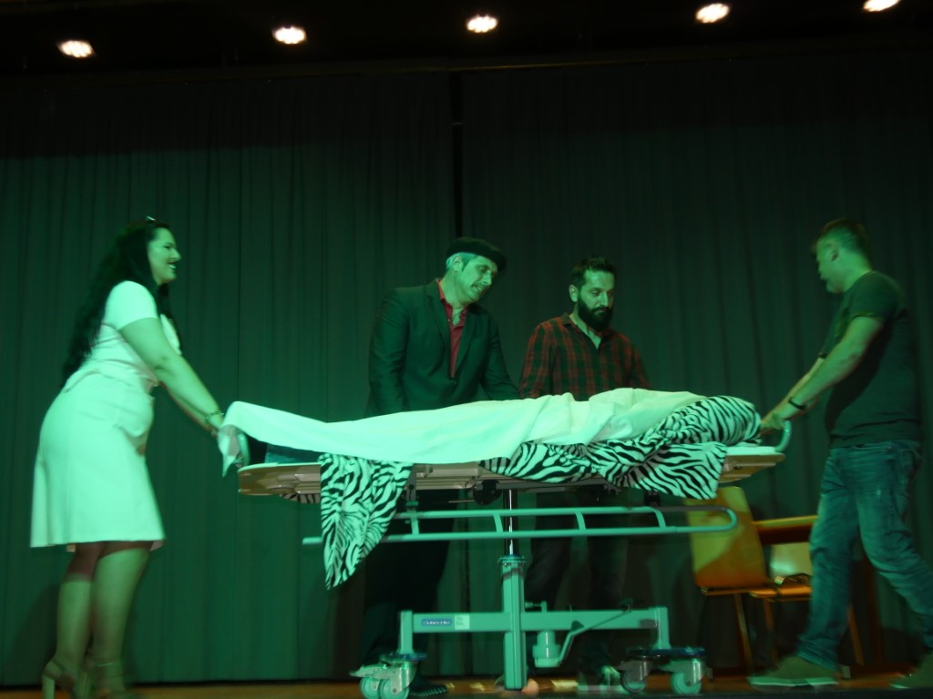 Në skenë defiluan aktorët e kësaj trupe që kanë një përvojë relativisht të gjatë në këtë trupë dhe trupat e mëhershme skenike, e që tërë aktivitetin e tyre e mbështesin në angazhime e punë vullnetare. Ndaj edhe kësaj radhe rolet në komedinë “Diploma-t” i luajti ekipi standard i “Aktrimit”, në përbërje: Yllka Zuzakut Mustafa (në rolin e doktoreshës), Ramadan Morina (Remziu), Fikrim Morina (Gëzimi) dhe Veli Berisha (kufoma). Ndërsa që për ndriçimin e muzikën ishte angazhuar aktori tjetër i kësaj trupe Avdi Amidi.