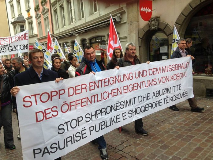 Pjesëtarët e komunitetit shqiptar janë tradicionalisht pjese aktive e manifestimit te 1 majit në disa qytete të Zvicrës. Kështu edhe sot aktivistet e Bashkësisë Shqiptare të Schaffhausen-it defiluan bashke me Faton Topallin, deputet i Lëvizjes Vetëvendosje! në Kuvendin e Republikës se Kosovës si dhe me kolegët zviceran e tjerë të huaj. Shqiptarët fillimisht gjatë marshimit tradicional, vunë në thumb procesin e shpronësimit dhe tjetërsimit abuziv te pasurisë shoqërore dhe kombëtare te Kosovës, përmes transparenteve ne gjuhen shqipe dhe gjermane „STOP SHPRONËSIMIT DHE ABUZIMIT TË PASURISË PUBLIKE DHE SHOQËRORE TË KOSOVËS“.