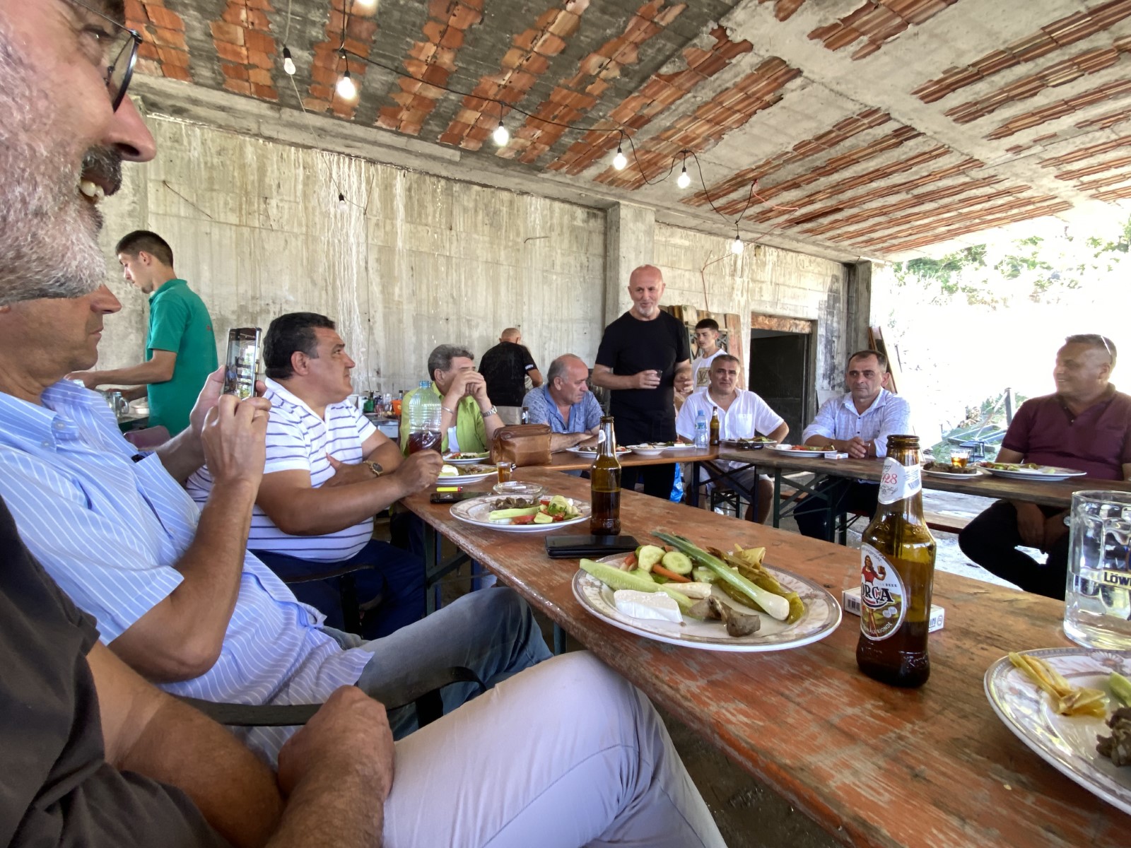 Përmes përshëndetjeve dhe ngritjes së dollive filloi dreka racionale që kishte përgatit familja Malaj, e ku nuk mungonin aq kecat në hell!