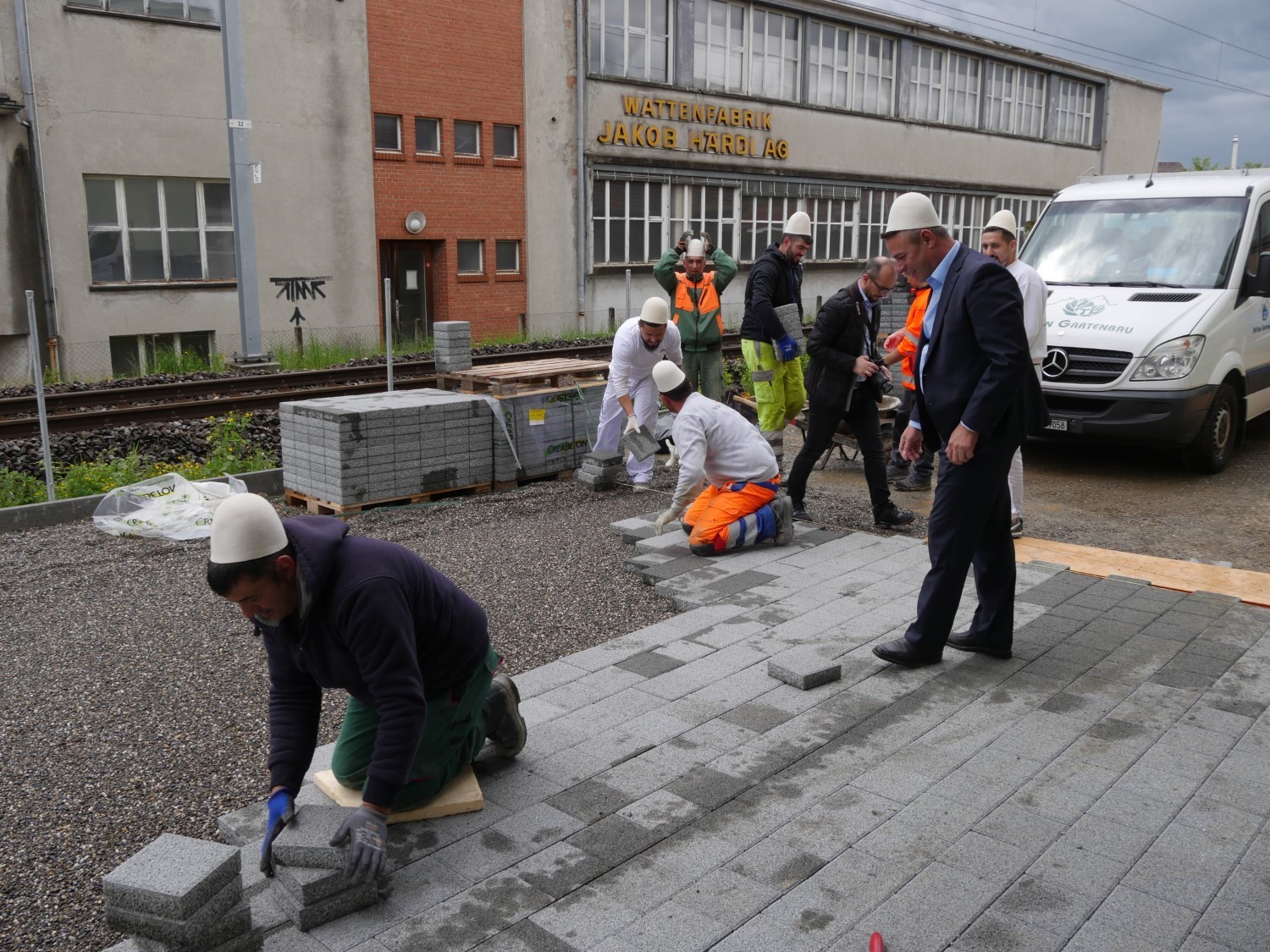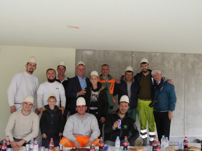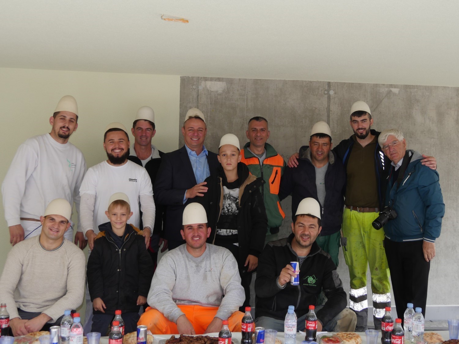Derisa punëtorët, punonin në vendosjen e pllakave të një objekti, zhvilluam një bisedë të shkurtër me pronarin e firmës Aida Immobilien AG,  Selajdin Ahmeti, kësaj radhe po ashtu me plisa në kokë. Madje këtë kënaqësi e gëzim e përjetuan, po ashtu me plisa të bardh në kokë, edhe vet pronari i firmës me dy djemtë e tij simpatik.