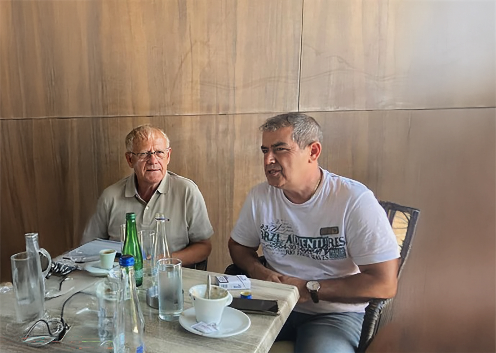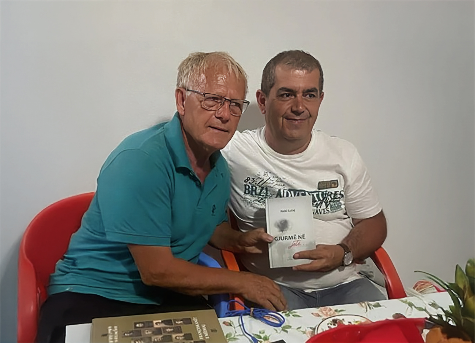 Arritën pas pesë minutash dhe zumë vend ne taracën e shtëpisë sime ngase brenda bënte vapë. Pas mirëseardhjes dhe përshëndetjeve të ngrohta, unë i qerasa me nga një raki kumbulle për t’i pritur kafet.
