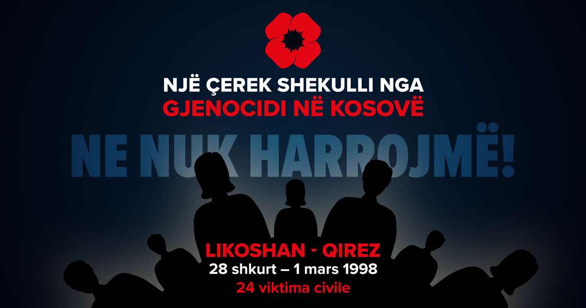 Gjatë vitit 2023 do të përkujtohet NJË ÇEREK SHEKULLI I AKTEVE GJENOCIDARE që janë kryer gjatë vitit 1998, ndërsa në vitin 2024 do të përkujtohet NJË ÇEREK SHEKULLI I AKTEVE GJENOCIDARE që janë kryer gjatë vitit 1999.