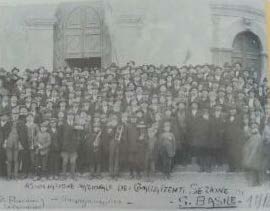 Ceremonia e inagurimit të Shoqates Kombetare, të lufëtëreve – seksioni i San Basile. Grupi pozon përpara shkallëve të kishës së S. Giovani Battista.