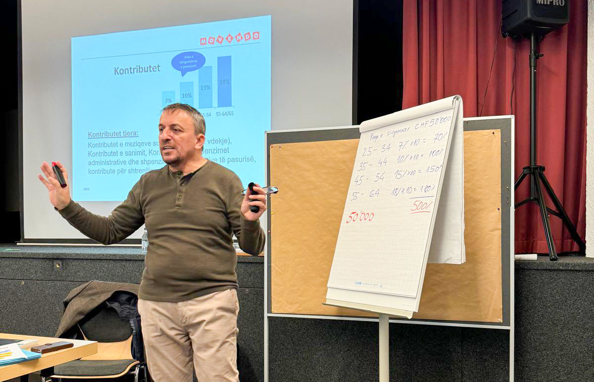 Të gjithë ata që gjenden para pensionimit duhet të informohen sa më mirë për sfidat dhe përgjegjësitë që përmban ky proces, përndryshe gabimet e bëra në fillim të përcjellin gjatë tërë jetës. Ky ishte mesazhi i përcjellë nga eksperti i diplomuar i Sigurimeve Shoqërore në Zvicër, Ruzhdi Ibrahimi, në kursin dyditor në gjuhën shqipe, të organizuar nga Instituti Arsimor i Bashkimit të Sindikatave në Zvicër “Movendo”.