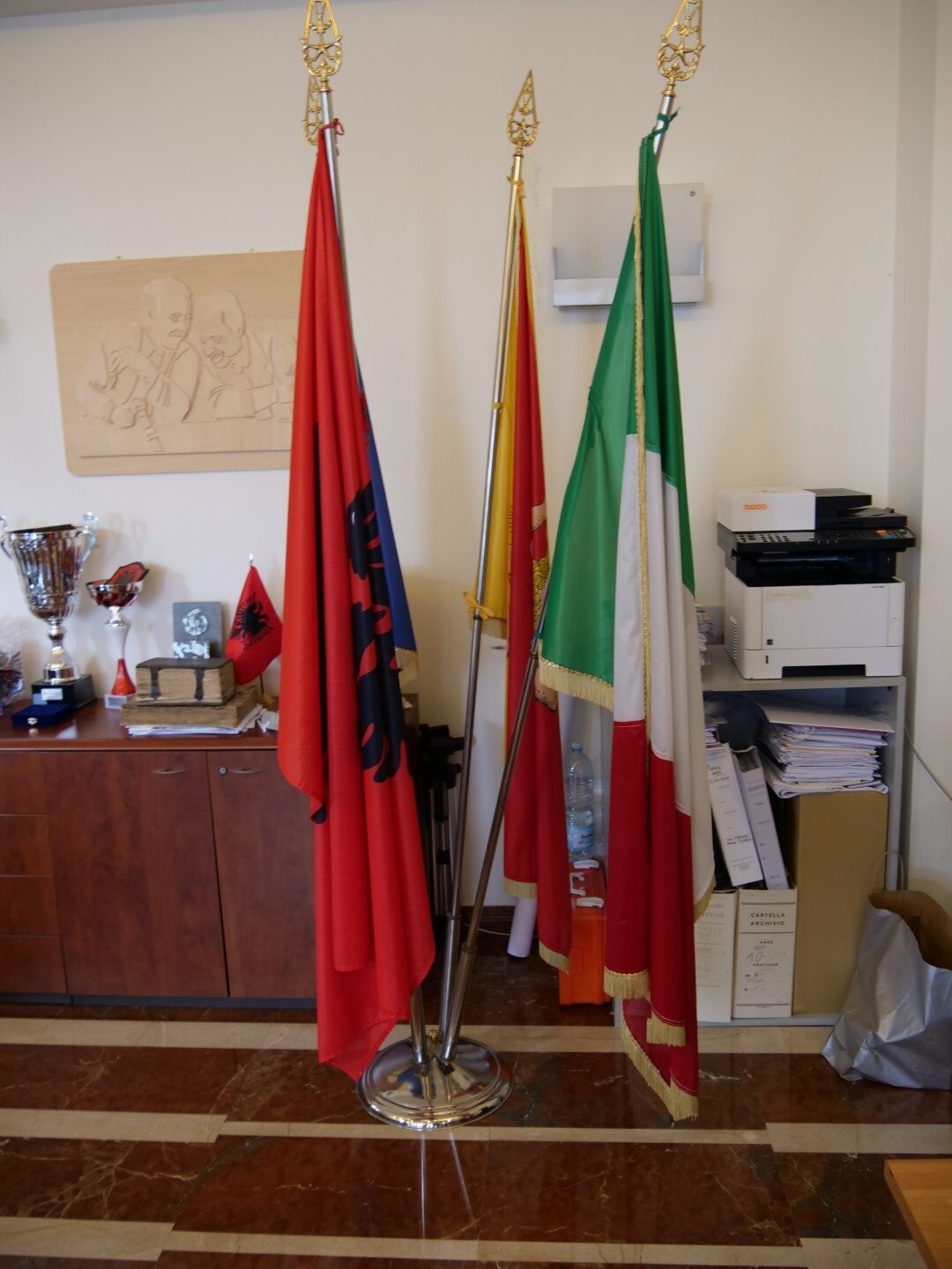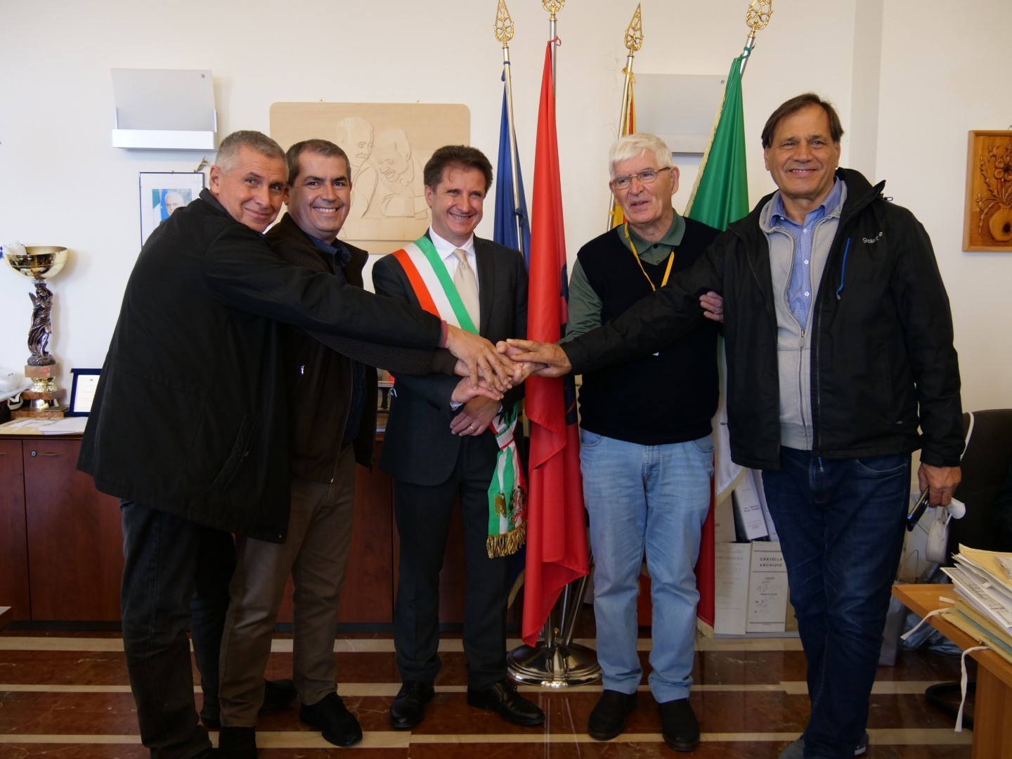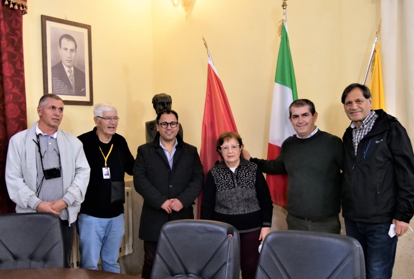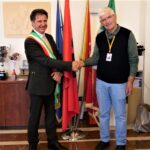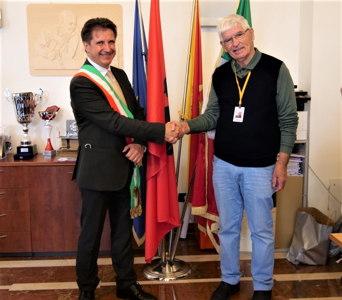 Gjatë inaugurimit të shkollës së porsa meremetuar, ku mbahen edhe dy orë të mësimit shqip, na priti edhe kryebashkiaku komunës së Horës së Arbëreshëve ( Piana degli Albanesi), z. Rosario Petta, në zyrën e të cilit valonte flamuri shqiptar i përdorur edhe në periudhën e lavdishme të Gjergj Kastriotit Skënderbeut. Kryebashkiaku, Rosario Petta, një udhëheqës dinamik dhe përplot sharmë me veshje solemne, ndonëse i zënë me shumë vizita gjeti kohë për të prit e falënderuar ekipin tonë për të vizituar dhe popullarizuar katundet arbëreshe të kësaj ane. Ai të magjeps edhe me sjelljet e afërta me palë dhe me gjithë ata që komunikon e bashkëbisedon.