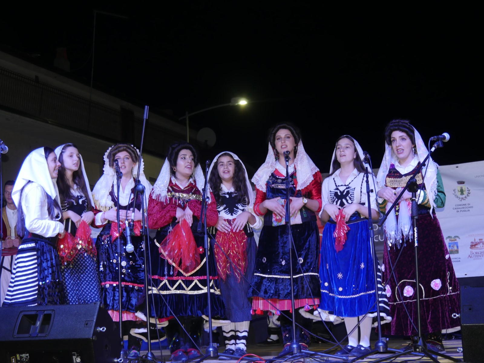 Si defileu përgjatë rrugëve të Kazallveqit ( Casalvecchio di Puglia), bashkë me grupet pjesëmarrëse arbëreshe, ashtu edhe dalja në skenë për vendasit ishte një sihariq i vërtetë sepse përherë të parë në qytezën e tyre shihnin një grup shumë atraktiv e unik, si në këngë, valle e kostume tradicionale të një treve shumë të veçantë shqiptare, që përherë të parë shkelte në Arbërinë arbëreshe.