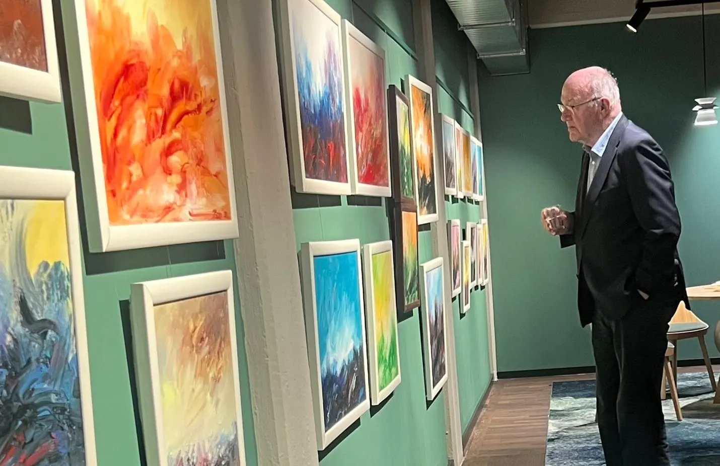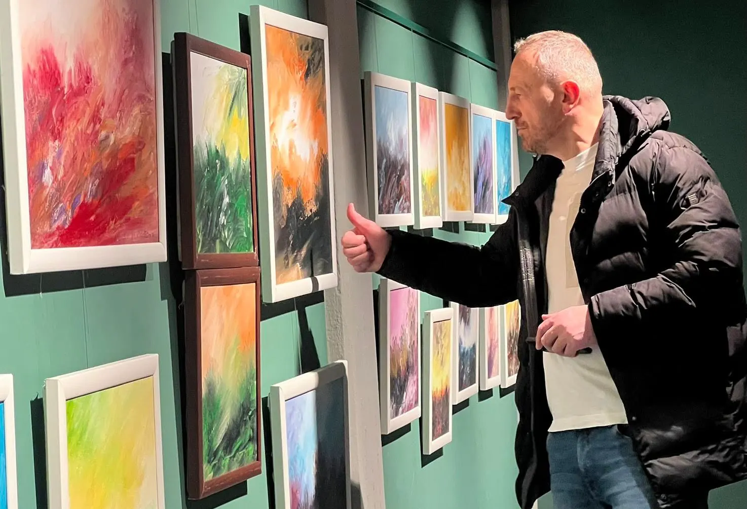 Peizazhe ngjyrash, të mbushura me tension, kontraste dhe një lojë harmonish të pasura, karakterizojnë peizazhet abstrakte të veçanta të Faton Aliu, të cilat u ekspozuan ditë më parë në Stadtbücherei Velbert Zentralbibliothek Gjermani (biblioteka qendrore e qytetit të Velbertit). Ekspozita personale u hap në galerinë e kësaj biblioteke. Ajo që të rrëmben menjëherë syrin është ngjyra, e kombinuar dhe e përzier në një shumësi nuancash që kulmojnë në një tërësi të vetme vizuale, duke krijuar një magji artistike të mbushur me konflikt të brendshëm shpirtëror. Peizazhi nuk paraqitet si një strukturë statike, por si një lëvizje e vazhdueshme ndërmjet dritës dhe hapësirës, e cila shpesh vihet në kontrast me format në plan të parë një veçanti e dallueshme e gjuhës piktorike të Aliut. Në këto vepra dominojnë ngjyrat e ngrohta, si portokallia dhe e kuqja, të ndërthurura me nuanca më të ftohta që krijojnë ekuilibër dhe tension vizual.