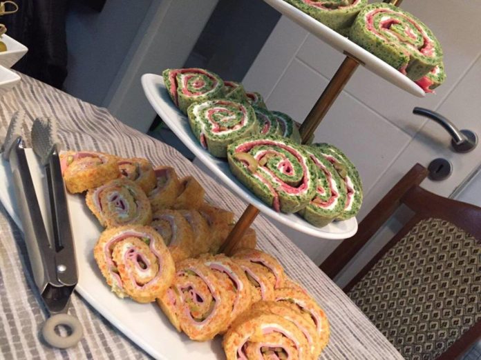 Pasi të piqet dhe të ftohet e lyejmë sipër me djathë me erëza, pastaj I shtojmë feta të holla proshute, i ngrimë një spec djegës dhe ullinj të vegjël dhe e mbështellim petën në formë rollade. E shtrëngojmë mirë dhe e lëmë në frigorifer që të ftohet në mënyrë që të ngurtësohet pak, para se ta presim.
