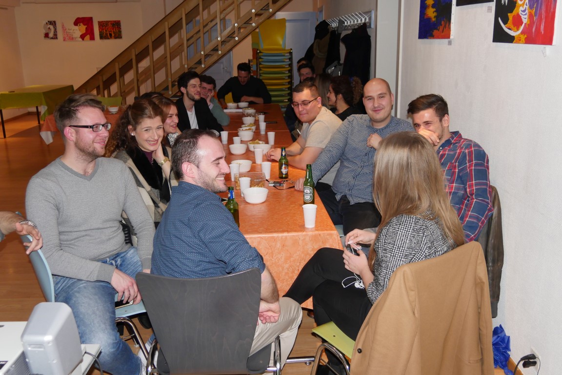 Sa i përketë takimit të mbrëmshëm ai kaloi në një atmosferë shumë të këndshme shoqërore, pos që u fol për aktivitetet dhe obligimet e shoqatës, pati edhe këngë e vallëzime. Shoqata ishte kujdes që të më dhuronte një shishe verë të llojit „Valiano“, ndërkaq unë si edhe të gjitha shoqatave të tjera studentore edhe kësaj i dhurova librin tim: „Shqiptarët në Zvicër- 1001 pamje“ si dhe shfaqa vido-kolozhin me fotofrafi nga udhëtimet e mija nëpër trojet shqiptare.