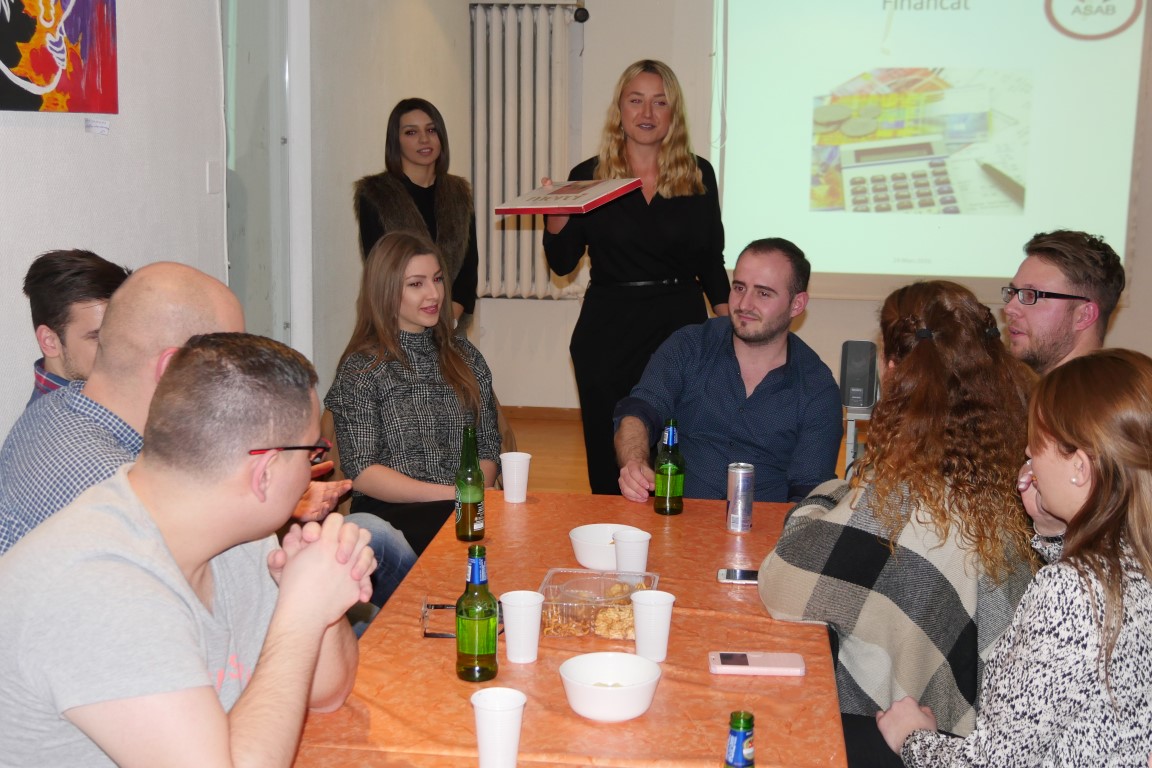 Sapo arrita në lokalin gjegjës, takova kryetaren e shoqatës Emsale Selmani, me prejardhje të familjes nga Bujanoci, bashkë me 3-4 studentë të tjerë që merreshin me përgatitjen e mbrëmjes. Kur arrita në lokal, kuptova se disa muaj më parë kisha qenë në te, në një promovim librash të një autori shqiptar dhe se po në te ekziston edhe një bibliotekë e pajisur edhe me libra shqip.