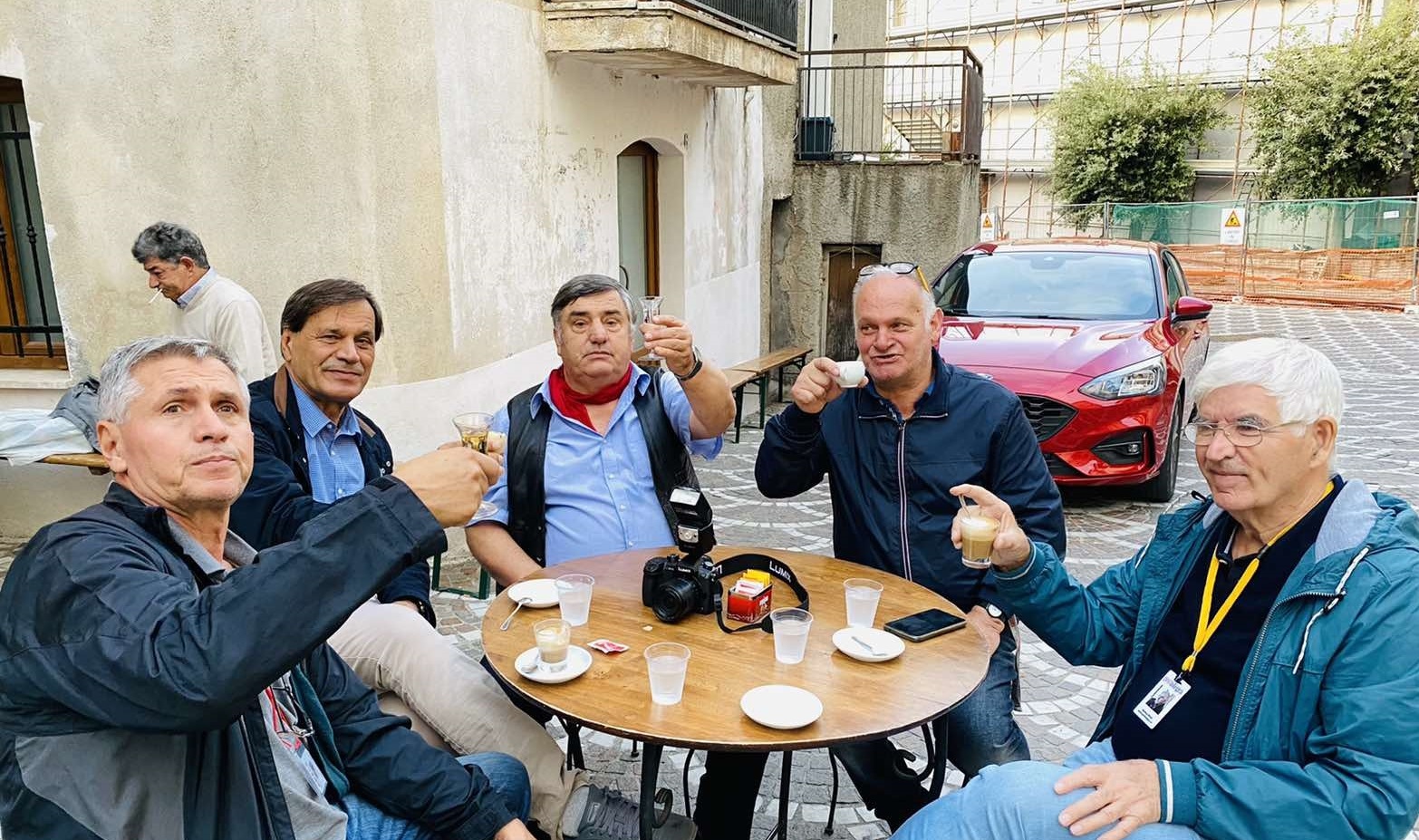 Takimi ynë, biseda nuk do mbaronte kurrë për çka agjenda jonë nuk priste. Na priste bujtina, pushimi nga rruga, qetësimi dhe përshtatja në ambientin e ri, na priste Shën Adriani historik. Mot me shi i cili lagte çdo cep dheu, çdo qime floku dhe depërtonte thellë në palcën e dheut. Të nesërmen, 23 tetor 2021, u takuam sërish me skulptorin. Vetura që kishim huazuar në aeroport ishte e vogël por e përshtatshme për rrugët kodrinore të Kalabrisë me shumë lakesa. Veturën ngiste më i riu prej nesh, Agroni me kujdes dhe ne kishim kohë të mahiteshim me te që t’i jepnim sado pak freski, zaten ai e mbante në timon suksesin e udhëtimit tonë. Pas kafes së mëngjesit në shesh, me dëshirën e Hevziut e shoqërova në veturën e tij, ishte nderim të mos e lë vetëm. Pas disa minutash arritëm në oborrin e liceut Shën Mitër, (San Demetrio Corone), një lokalitet i njohur me histori të veçantë jo vetëm në Kalabri e Itali, por edhe për shqiptarët e Shqipërinë me kolegjin e famshëm të Shën Adrianit ku punoi dhe veproi Rilindësi ynë i madh Jeronim De Rada Shiu që binte pengonte fotografimin ashtu siç ne dëshironim të ngritur në këmbë secili me celularët e tija, kurse Rexha përveç celularit kishte dy kamera tjera, njëra e vogël e ngjashme me celular, kurse tjetra fotoaparat me objektiv të fuqishëm që nuk lejonte dyshim. Edhe, ashtu ne fotografonim, por Rexha ishte mjeshtri nga i cili pritnim pamjet e bukura. Muret e lashta të liceut dallonin nga pjesa e ndërtesës së re ku lexuam mbishkrimi mbi të cilin valëvitnin rëndë flamujt e lagur. Derisa Rexha fotografonte sikur të ishte për të parën herë këtu, ne pritnim fjalët e skulptorit tani vendës, arbëreshit më të ri në Kalabri, Hevzi Nuhiut. Shpjegimi i tij ishte me shumë respekt mbi liceun e njohur historinë, rëndësinë e tij, namin e tij i cilit mori dheun shekujve. Pragu i vjetër shekullor i liceut, një gur kalabrez, kishte gjurmë nga hapat e mijëra studentëve shekujve. “Ja, e shihni këtë gur pragun nën portën shekullore të drunjtë? Këtu ka shkelur këmba e Avni Rrustemit, student së bashku me shokun e tij të klasës, nga këtu ata u nisën në rrugën e tyre për të vrarë pashallarë e mbretër antikombëtar, – tha Hevziu i emocionuar dhe vazhdoi me historinë pa harruar të Heroit të Kombit, Avni Rrustemi dhe figurave tjera madhore kombëtare student të liceut.