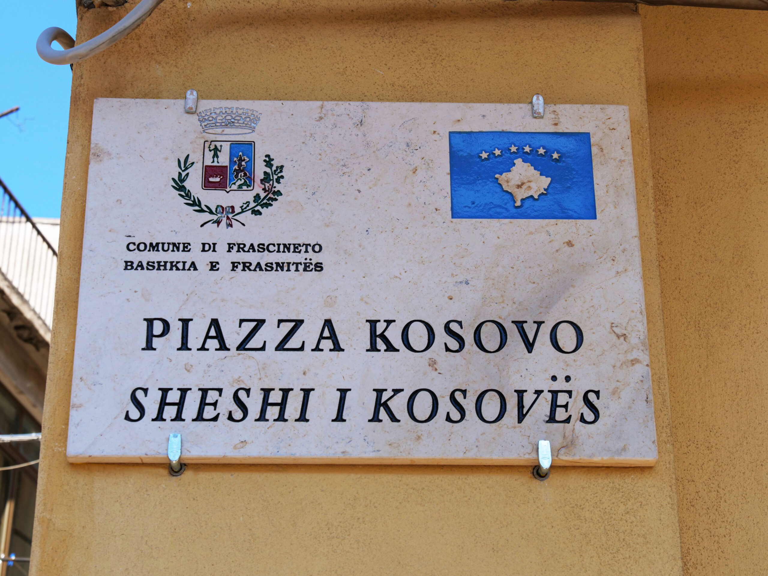 Vizita e Presidetes së Kosovës , Vjosa Osmani- Sadriu, rezultoi edhe me zbulimin e një pllake me emërtimin dygjuhësor (siç ngjet zakonisht me toponimet në ngulimet arbëreshe): “Sheshi i Kosovës”. Kjo ndodhi pikërisht në ngulimin me peshë dhe rëndësi sa historike aq edhe kulturore: Frasnitë / Frascineto në Kalabri, vendbanim nga kulmuan figura të shquara në fushën e gjuhës, letërsisë dhe artitnë përgjithësi.