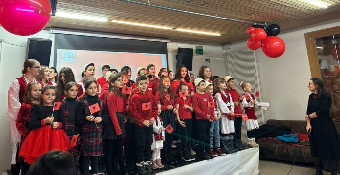 Grupi i nxënësve të klasës së parë: Amina, Jara, Rajana, Lena, Emma, Enea kënduan këngën „Shkolla shqipe“.