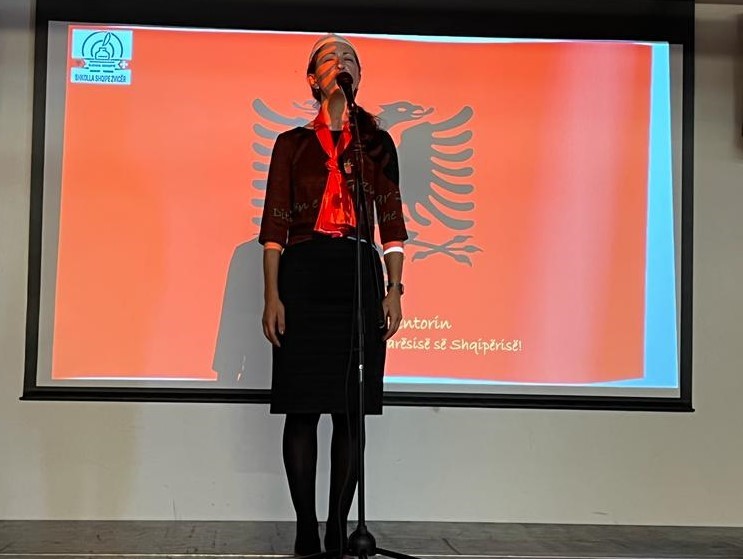 Programi filloi me  himnin e flamurit dhe këngën: „Ty flamur të duam shumë “ kënduar nga të gjithë nxënësit. Pastaj nxënësit e shkollës shqipe Cham: Anina Malushi,Lorik e Olsa Dina, Blend Krasniqi , Arjola e Leart Dushi vazhduan me recitalin: „28 Nëntori“ nga Lasgush Poradeci.