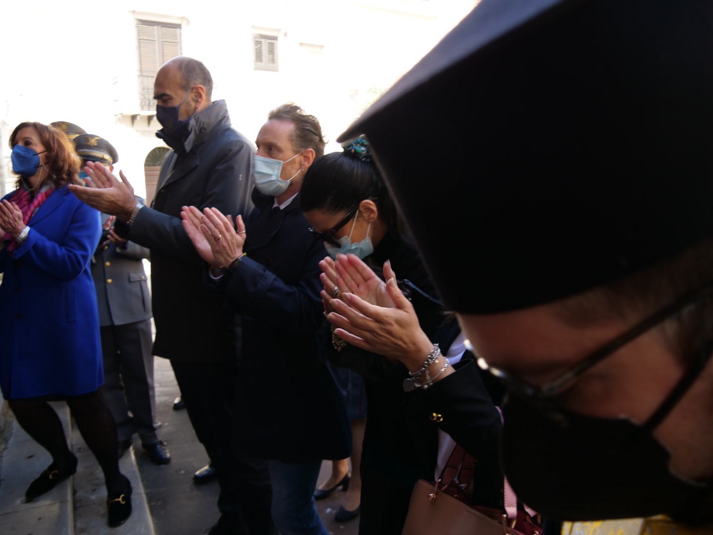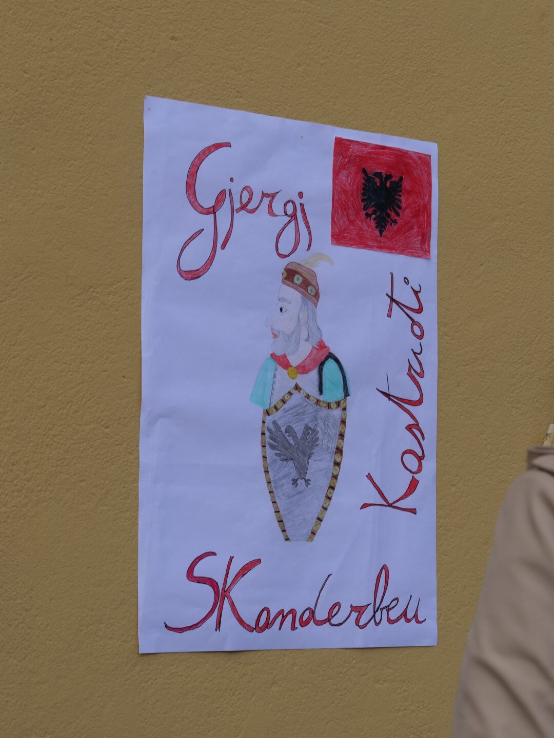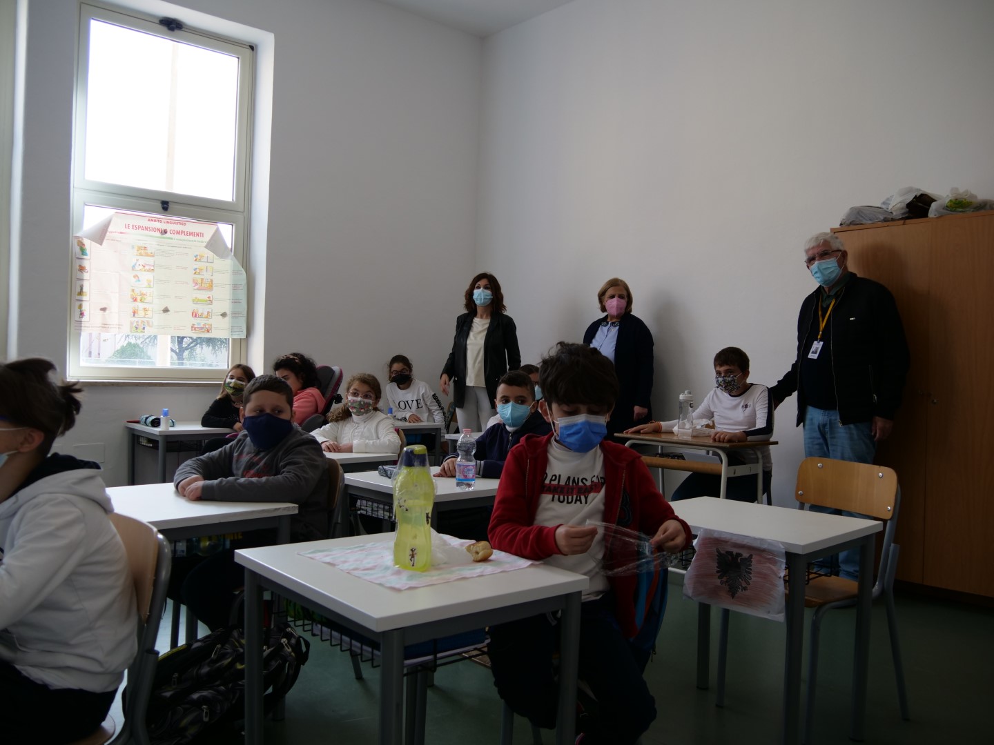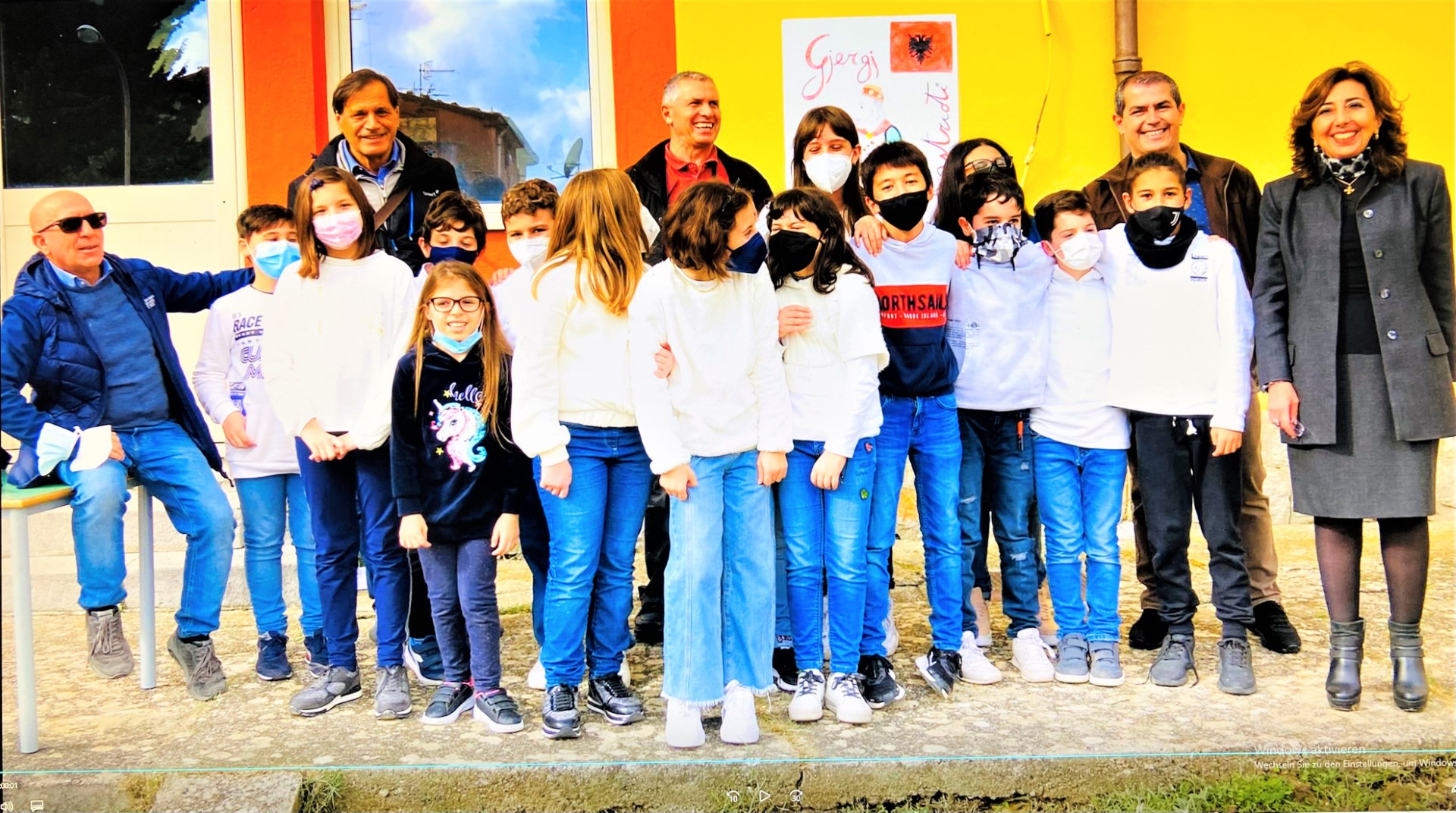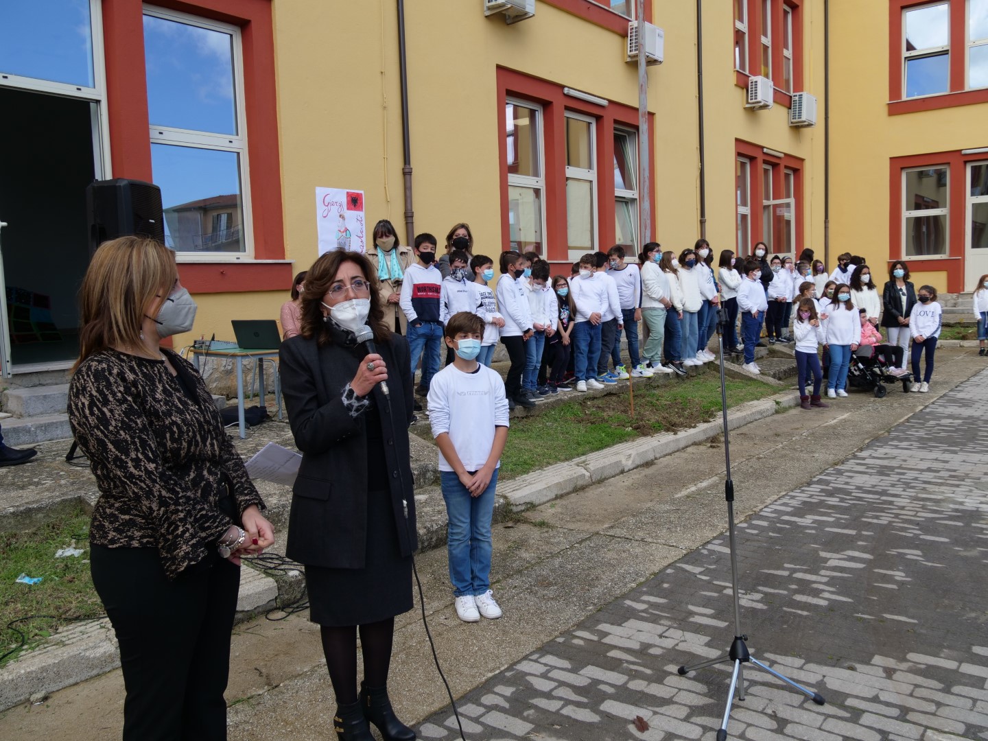 Në fjalën e tij, Kryetari i komunës së Horës së Arbëreshëve ( Piana degli Albanesi), z. Rosario Petta, i veshur në petkun solemn, përplot entuziazëm për motivimin e brezit të ri, pasi që përshëndeti nxënësit dhe mësimdhënësit duke u dëshiruar shumë suksese në mësime, nuk harroi të përshëndes edhe pranin e ekipin tonë. Dhe pasi me këtë rast folën edhe vetë drejtuesit e shkollës “Skandërbeg” dhe mësuesja e mësimit arbërisht, veprimtari i palodhshëm i Horës, Giorgio Cuccia na prezantoi para të pranishmeve, duke më ofruar edhe mua fjalën, meqë rast përgëzova nxënësit, mësimdhënësit dhe autoritetet për suksese të reja me dëshirën që gjuha amtare arbërishtja, gjegjësisht shqipja të ruhet e kultivohet, por edhe që të shtohen këmbimet e vizitave me trojet etnike shqiptare nga trojet stërgjyshore të vet arbëreshëve.