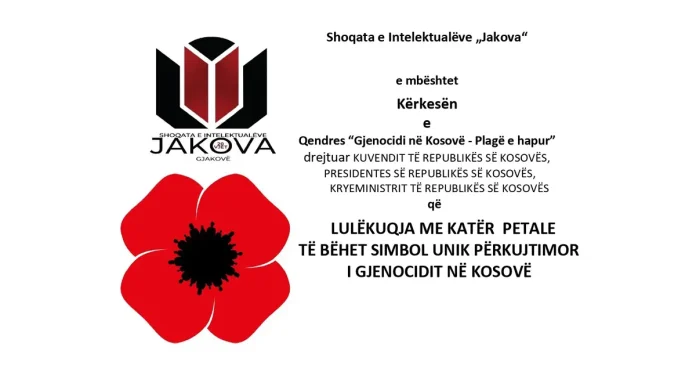 Në një deklaratë të nënshkruar nga Prof. Dr. Ruzhdi Sefa, Shoqata e Intelektualëve “Jakova” me seli në Gjakovë, mbështetë kërkesën e Qendrës “Gjenocidi në Kosovë – Plagë e Hapur” që lulëkuqja me katër petale të bëhet simbol unik përkujtimor i gjenocidit në Kosovë.
