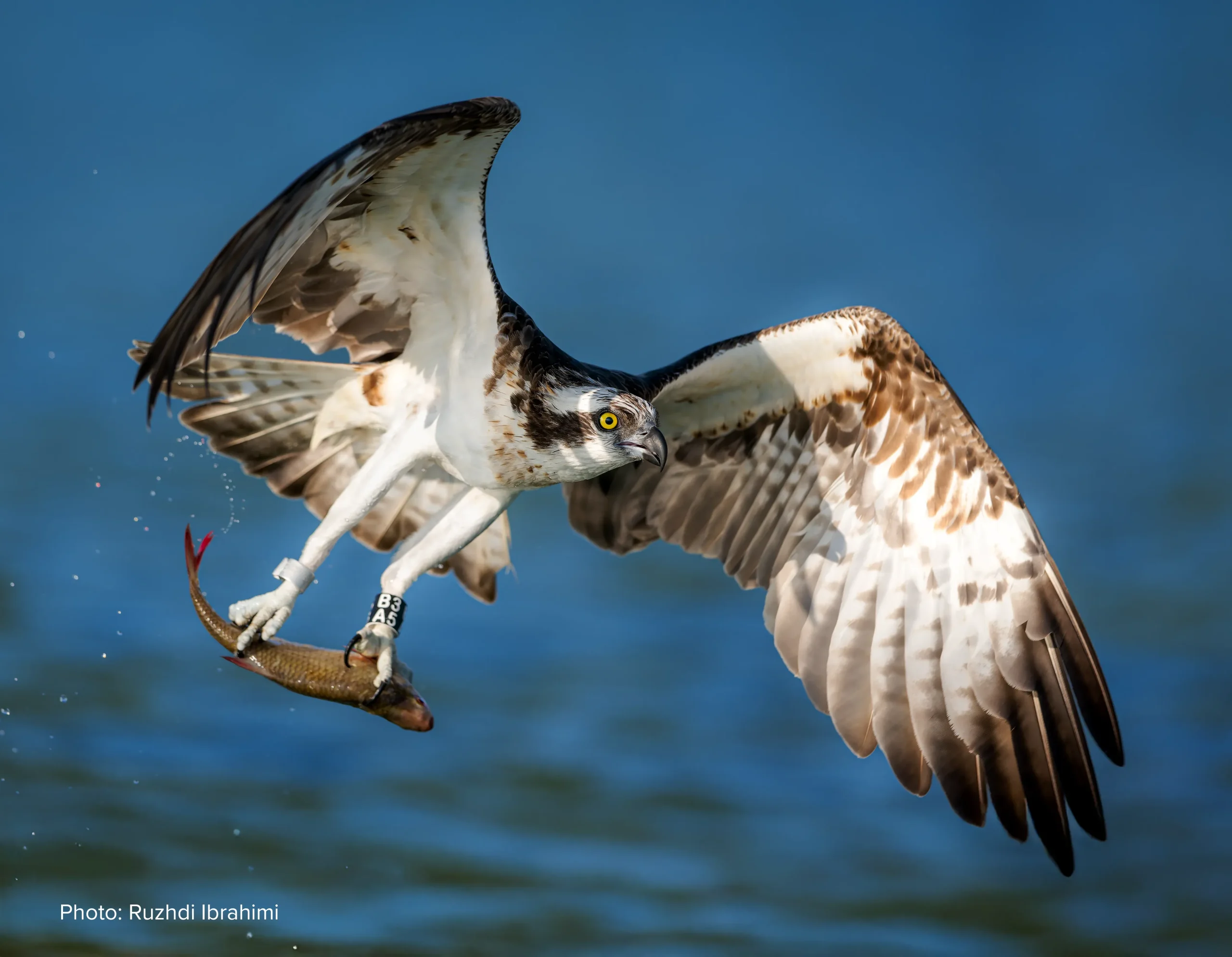Si një shigjetë e lëshuar nga një hark elastik, ulet shqiponja peshngrënëse në sipërfaqen e qetë të liqenit, e kap peshkun me kthetrat e saj të fuqishme dhe ngjitet shpejt me peshkun nën kthetra, duke lënë prapa vetëm disa pika të ujit të trazuar. Është një përpjekje e vazhdueshme për të kombinuar fuqinë, të bukurën dhe natyrën në një fotografi.