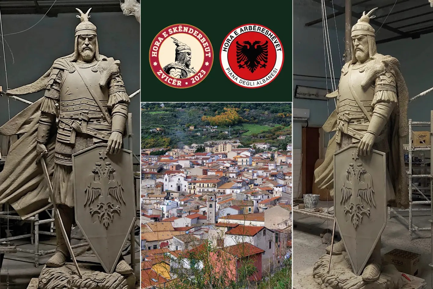 I prirë nga dashuria për Kryetrimin tonë, aktori me banim në Zvicër, Veli Berisha, ishte i pari shfaqi dëshirën duke kontribuar edhe materialisht për këtë monument, vepër e skulptorit të mirënjohur prishtinas, Gëzim Muriqi. Kryesia e shoqatës vendosi që kjo vepër ti dhurohet vëllezërve të një gjaku në Hora të Arbëreshëve në Sicili, që njihet si kryeqendra e identitet arbëror, e ku me dashuri e fanatizëm ruhet gjuha, traditat dhe simbolet kombëtare. Kryesia e Shoqatës sonë vuri që në fillim kontakt me kryetarin e Bashkisë së Horës z. Rosario Petta dhe personalitetet e fushave të artit e kulturës në Hora të Arbëreshëve të cilët këtë lajm e mirëpritën dhe u zotuan edhe për sigurimin e lokacionit.