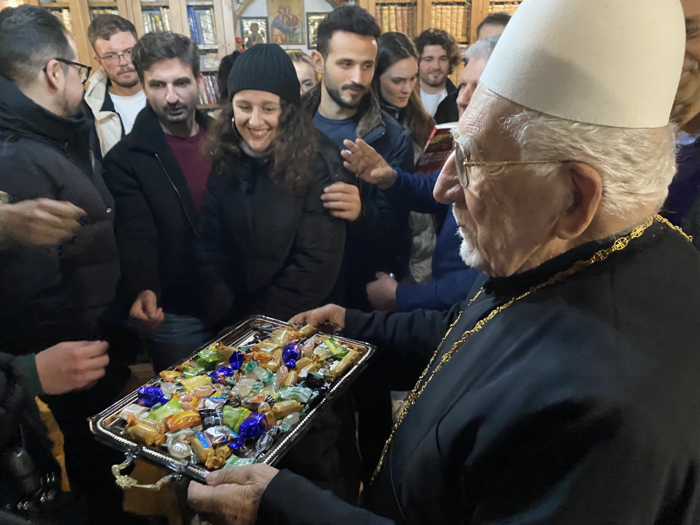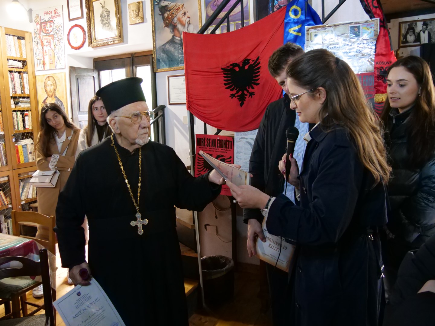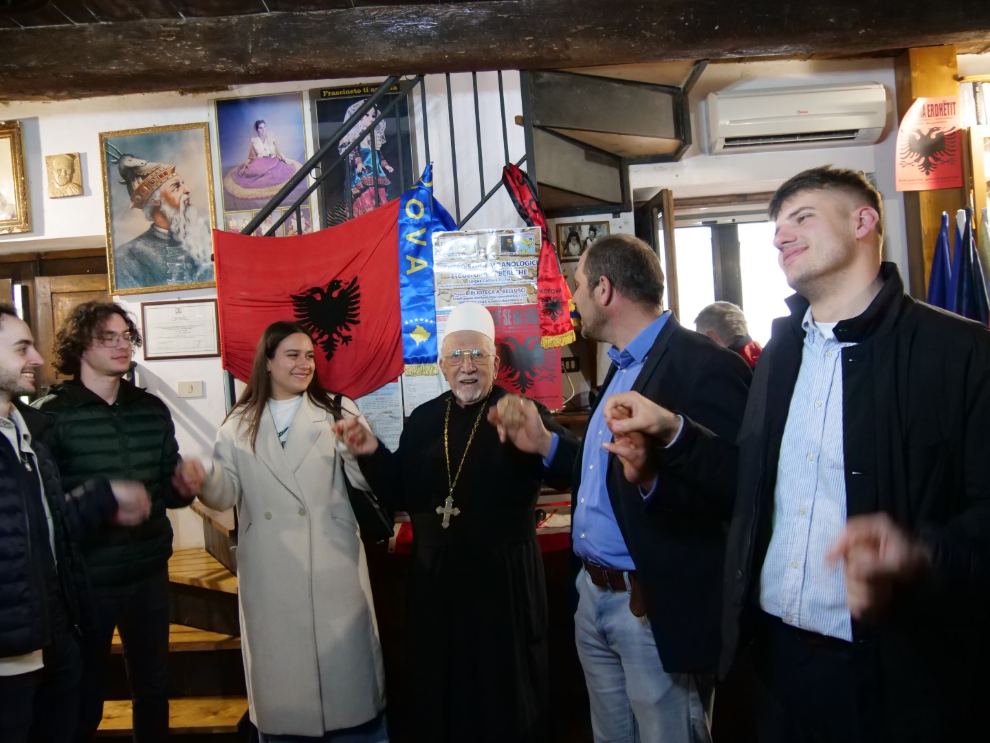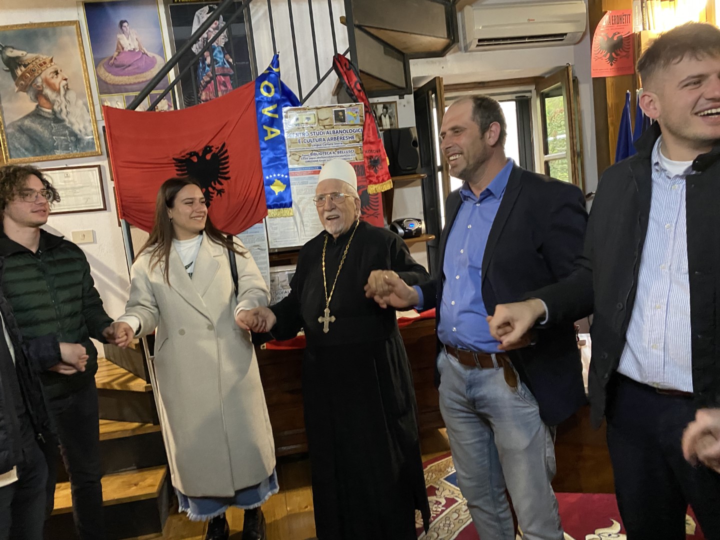 Studentët tanë të paraprirë nga kryetari i shoqatës “Studenti” të Universitetit të Cyrihut Eleonit Smajli, pasi falënderuan për pritje kaq të përzemrë atë Antonion, luajtën edhe një valle të përbashkët në shtëpinë stërgjyshore të At Antonios,  të shndërruar në një bibliotekë unike me një kapital prej më se 6 mijë ekzemplarësh të rrallë, por edhe në një odë mikpritjeje tradicionale ku miku nderohet me përqafime, lot e këngë arbëreshe, që përherë të krijojnë emocione e nostalgji.