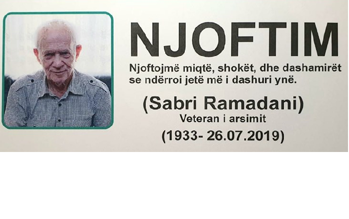 Më 27 korrik 2019, në moshën 86 vjeçare u nda nga ne, pedagogu Sabri Ramadani.