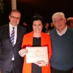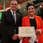 Të ftuar për të marrë pjesë, Presidenti i UPSH-së, Z. Manuel Tornare, dhe Drejtoresha Albana Krasniqi Malaj, pranuan çmimin nga Ambasadorja Anne Moulin Lougon.